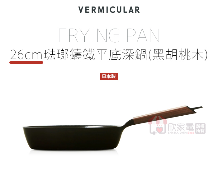 日本 Vermicular 26CM琺瑯鑄鐵平底深鍋 -黑胡桃木