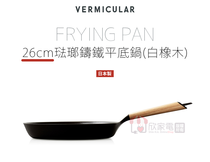 日本 Vermicular 26CM琺瑯鑄鐵平底鍋 -白橡木
