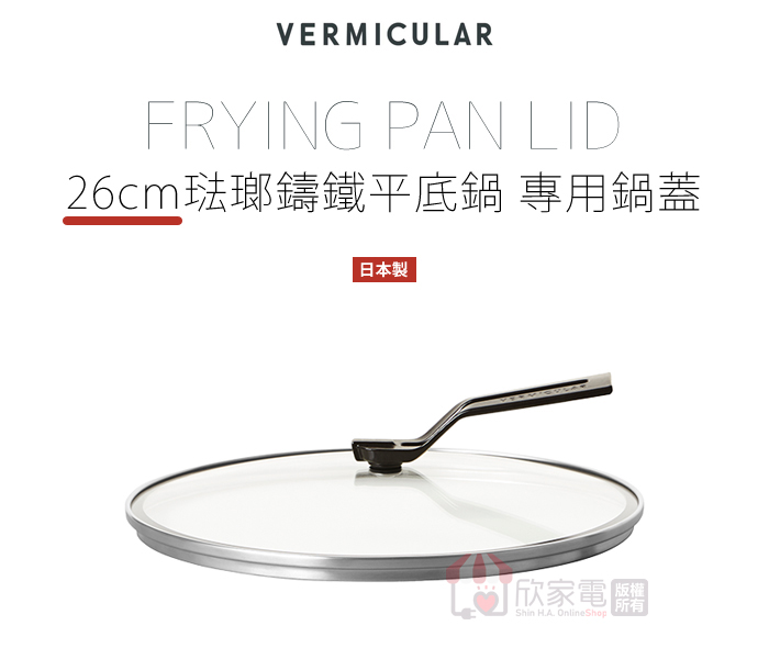 日本 Vermicular 26CM琺瑯鑄鐵平底鍋專用鍋蓋