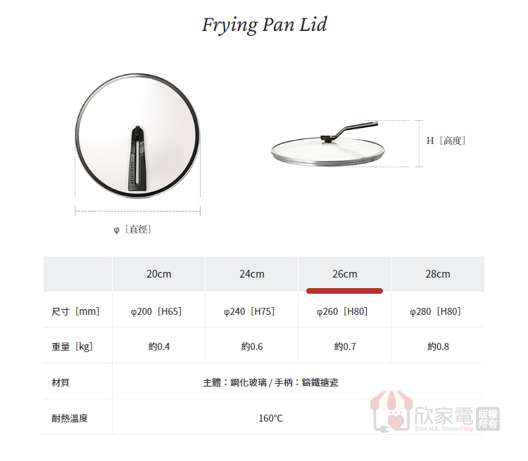 材質:鍋蓋本體-強化玻璃、不鏽鋼/手把-琺瑯鑄鐵