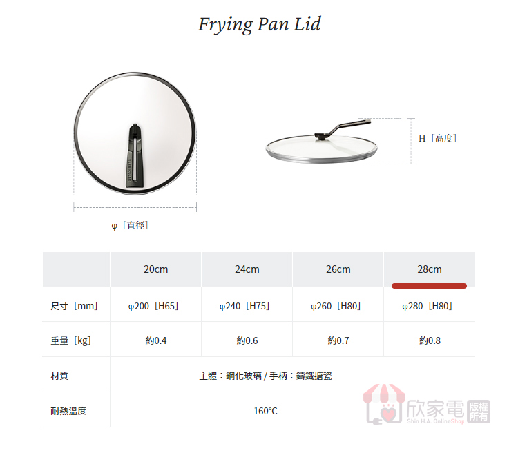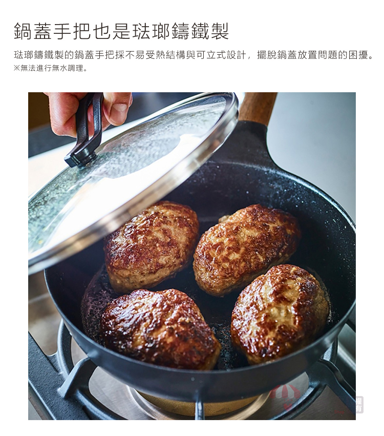 材質:鍋蓋本體-強化玻璃、不鏽鋼/手把-琺瑯鑄鐵
