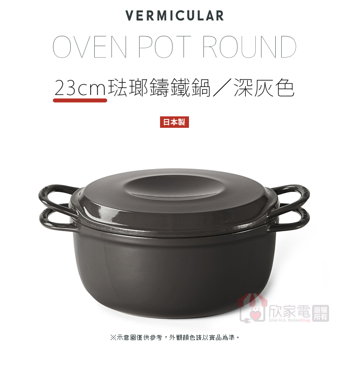日本 Vermicular 23cm 琺瑯鑄鐵鍋 / 小V鍋 -深灰色