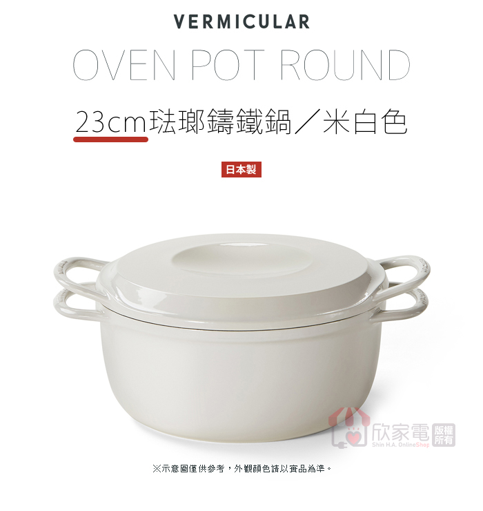 日本 Vermicular 23cm 琺瑯鑄鐵鍋 / 小V鍋 -米白色