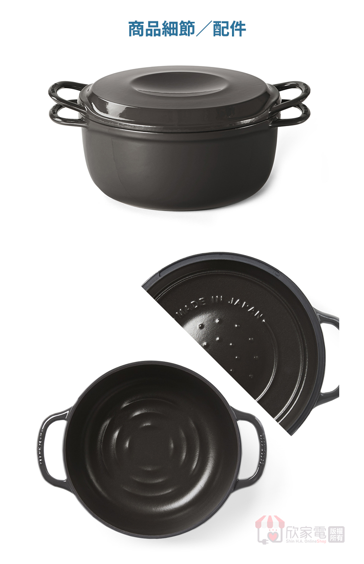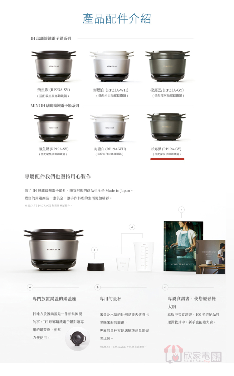 內容物:包含IH加熱器乙個、19CM琺瑯鑄鐵鍋乙個、專用鍋蓋座乙個、專用量杯兩個、192頁專屬食譜書乙本