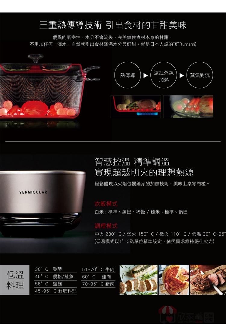 火源模式:中火230℃、若火150℃、微火110℃、低溫調理30-95℃