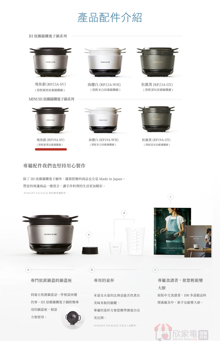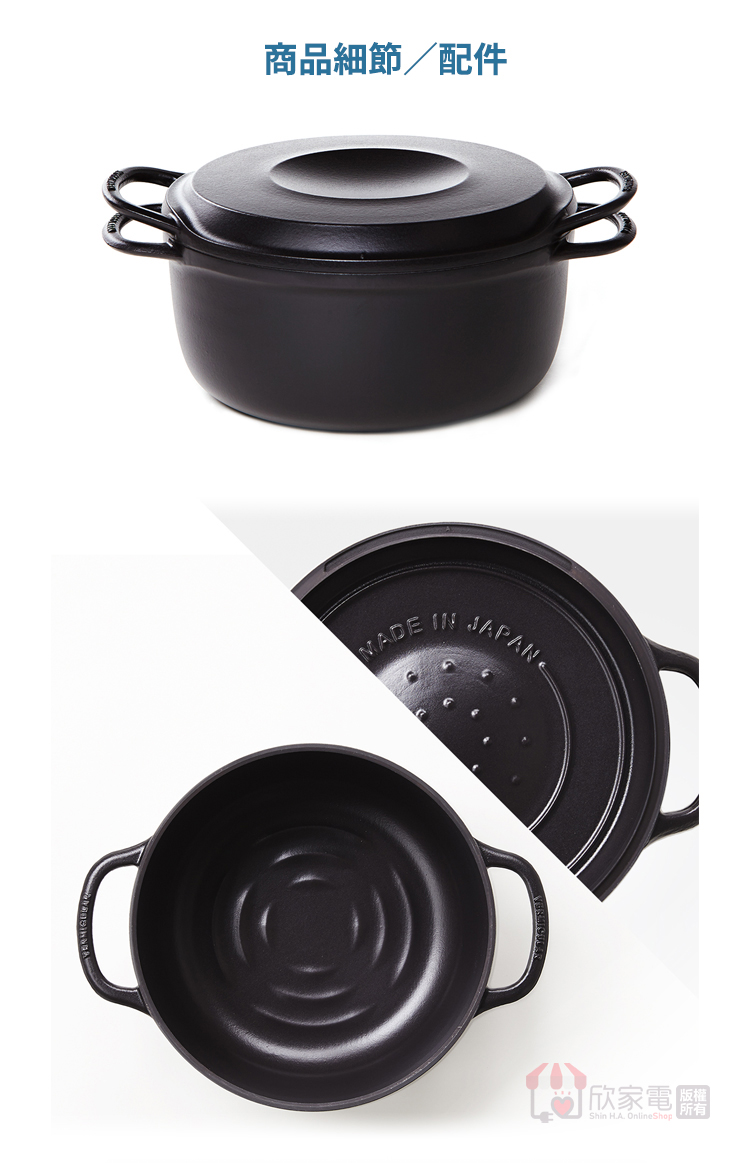 內容物:包含IH加熱器乙個、19CM琺瑯鑄鐵鍋乙個、專用鍋蓋座乙個、專用量杯兩個、192頁專屬食譜書乙本