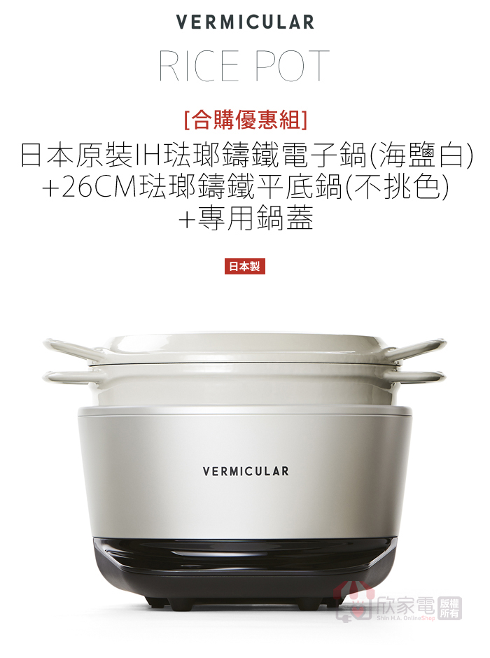 日本 Vermicular 全能IH琺瑯鑄鐵電子鍋 -海鹽白
