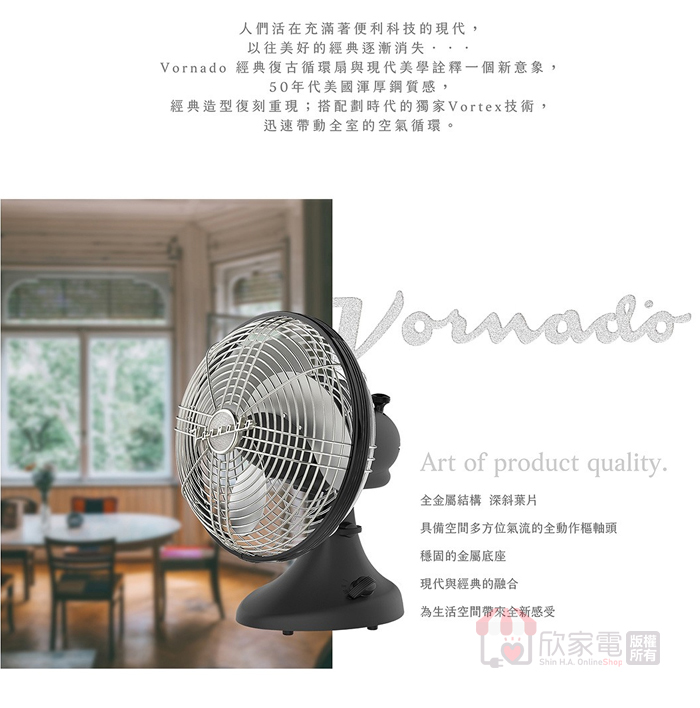 VORNADO 沃拿多 再造經典復古扇-霧黑
