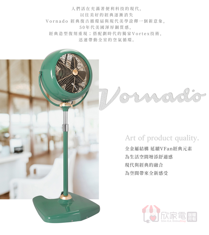 VORNADO 沃拿多 高腳經典復古循環扇-綠色
