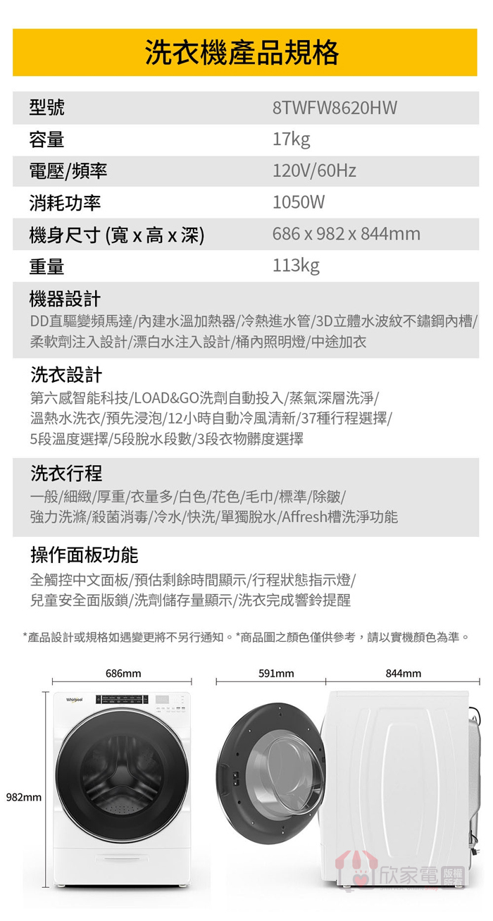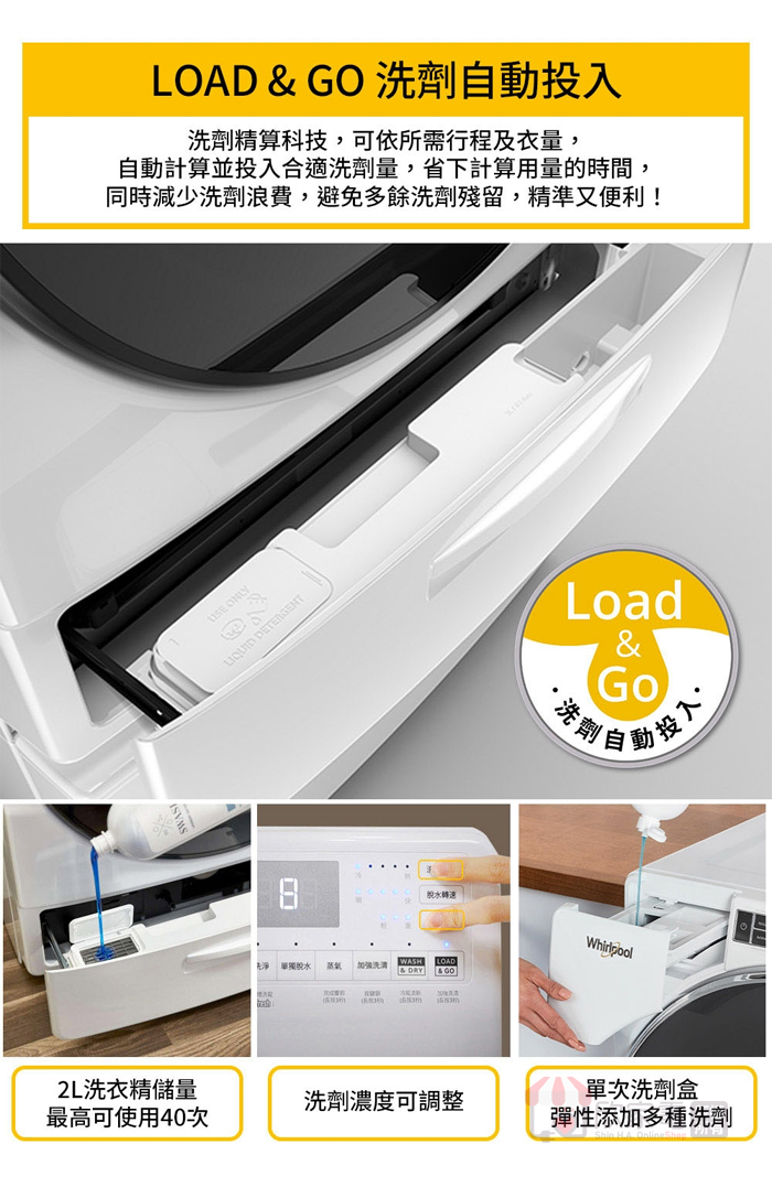Whirlpool 惠而浦 17KG 美製 Load & Go 蒸氣變頻滾筒洗衣機