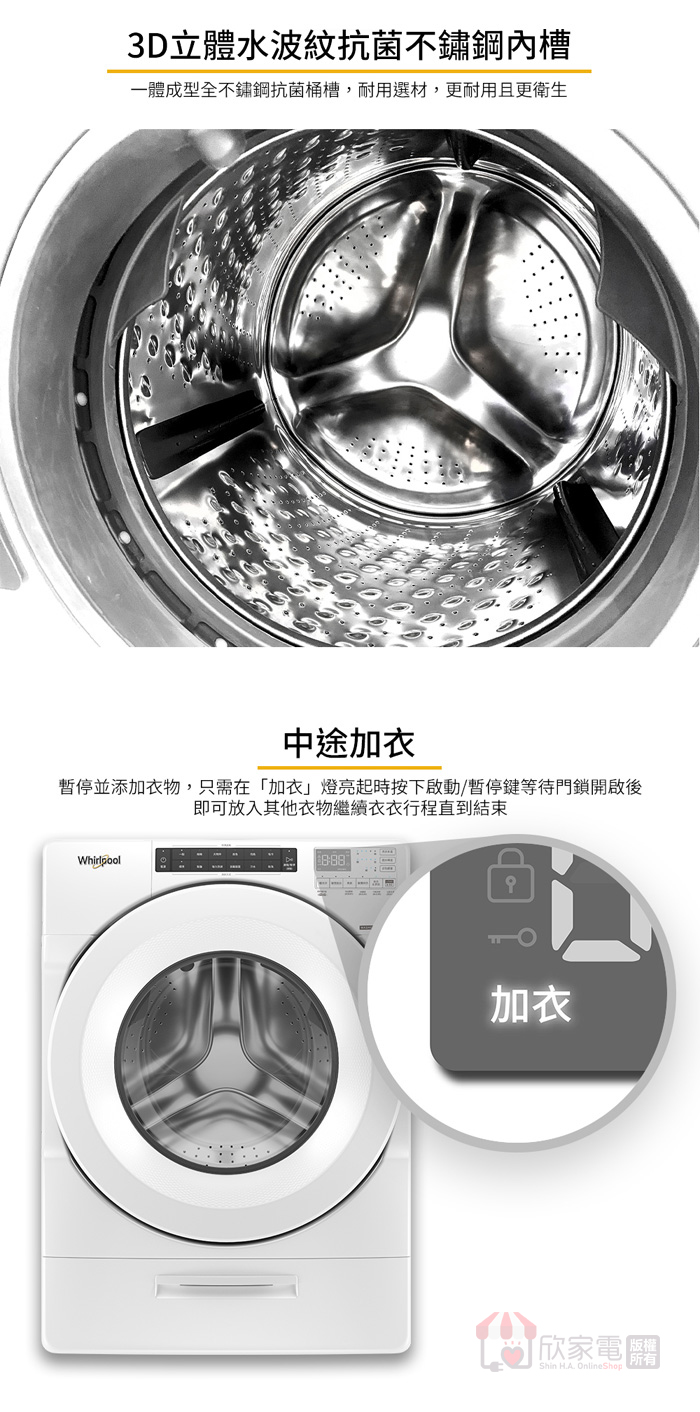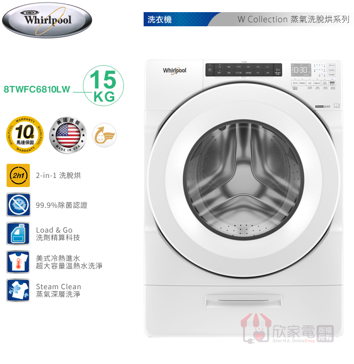 Whirlpool 惠而浦 15KG 美製 Load & Go 蒸氣洗滾筒洗脫烘