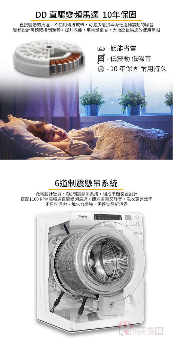 全機1年,主機板3年,馬達5年 (2020/9/1 指定型號 10年),軸受阻品3年,外桶3年。