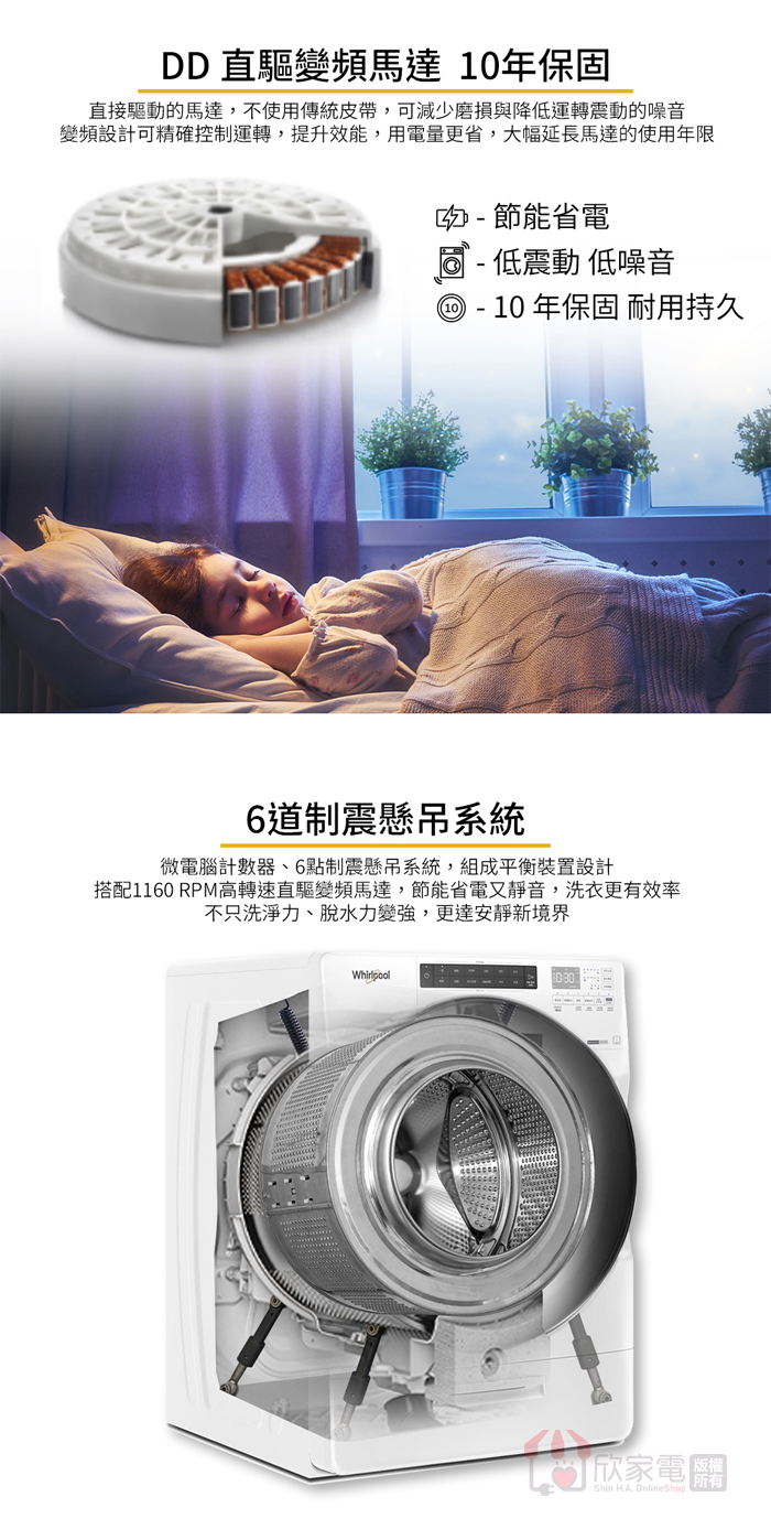全機1年,主機板3年,馬達5年 (2020/9/1 指定型號 10年),軸受阻品3年,外桶3年。