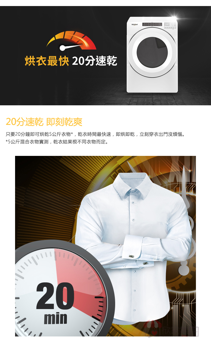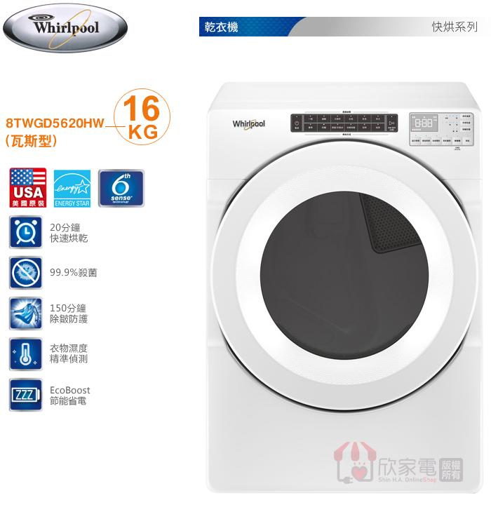 Whirlpool 惠而浦 16KG 美製 35行程快烘滾筒式乾衣機-瓦斯型