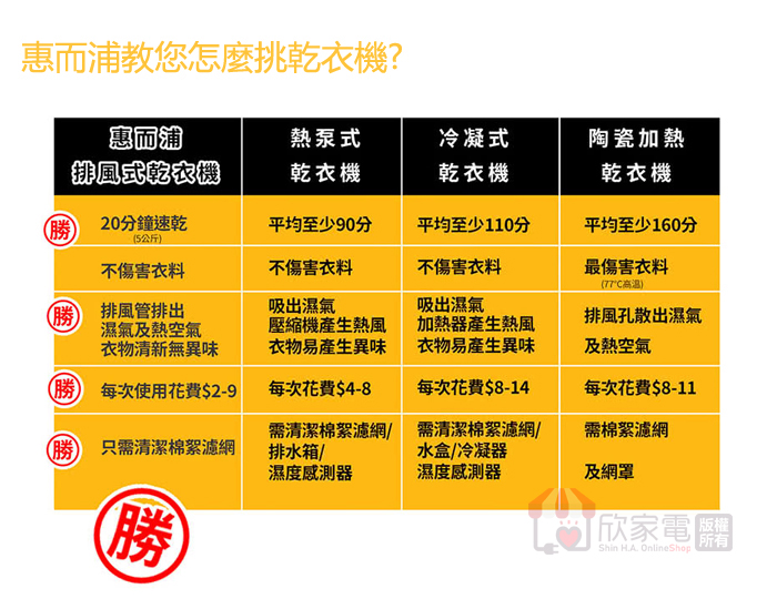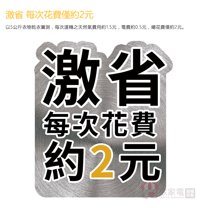 烘乾熱源:瓦斯 (天然 / 桶裝)