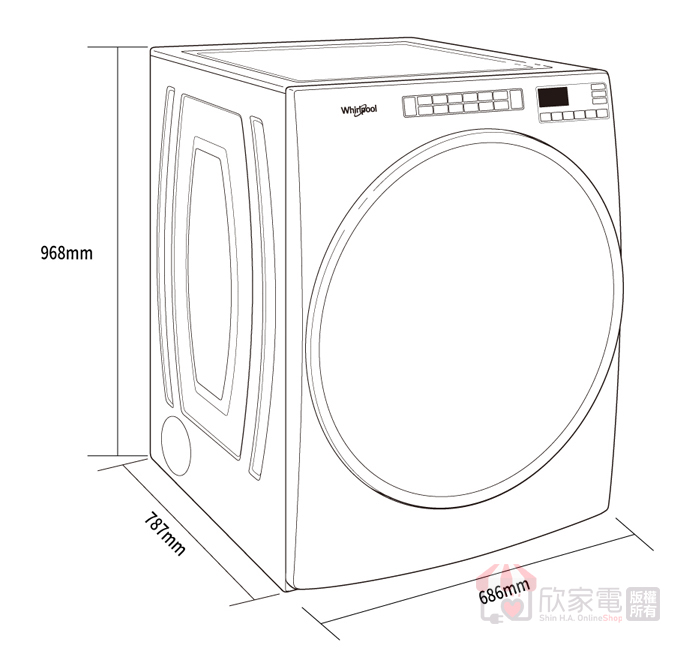 產品尺寸 (寬x高x深):686 x 968 x 787 mm