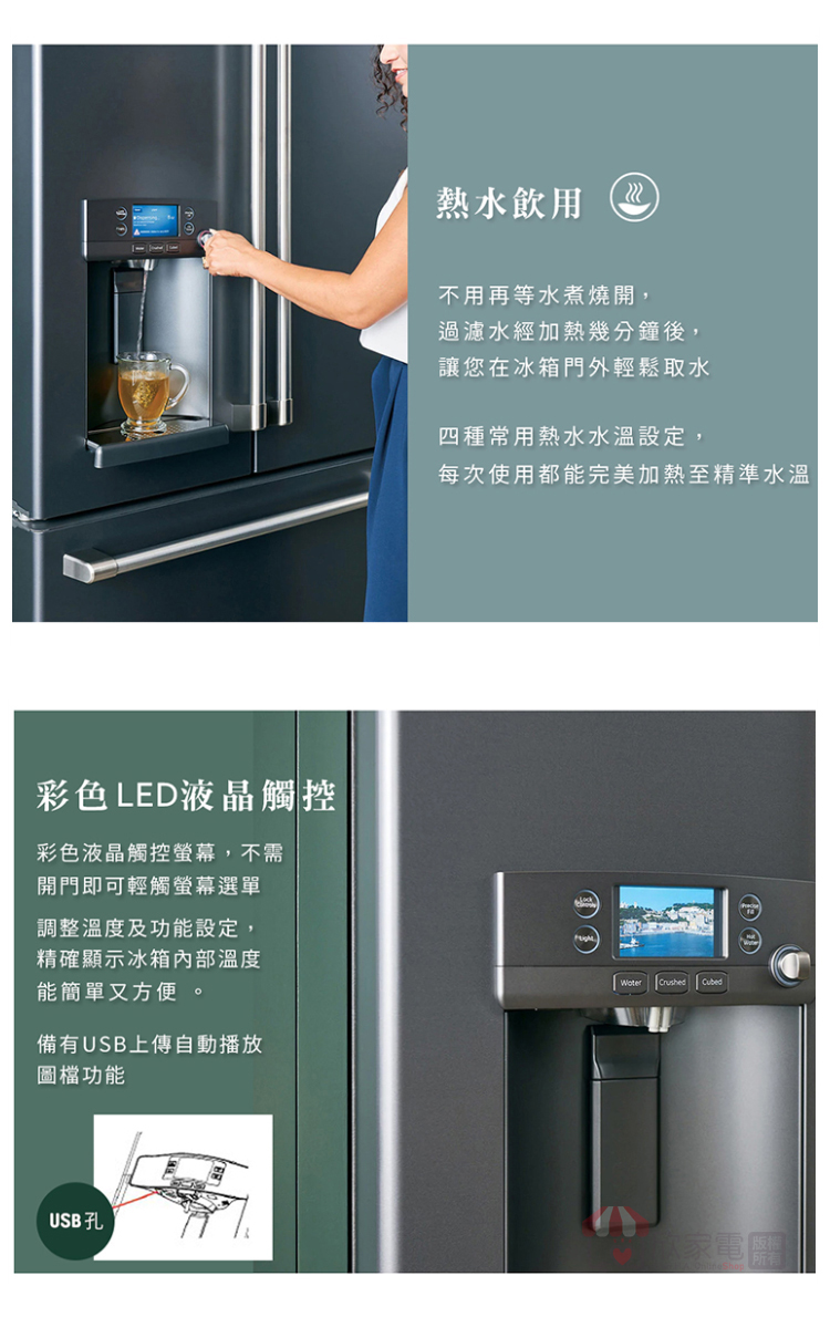 GE 奇異 810公升 熱水飲用法式三門冰箱 -不鏽鋼