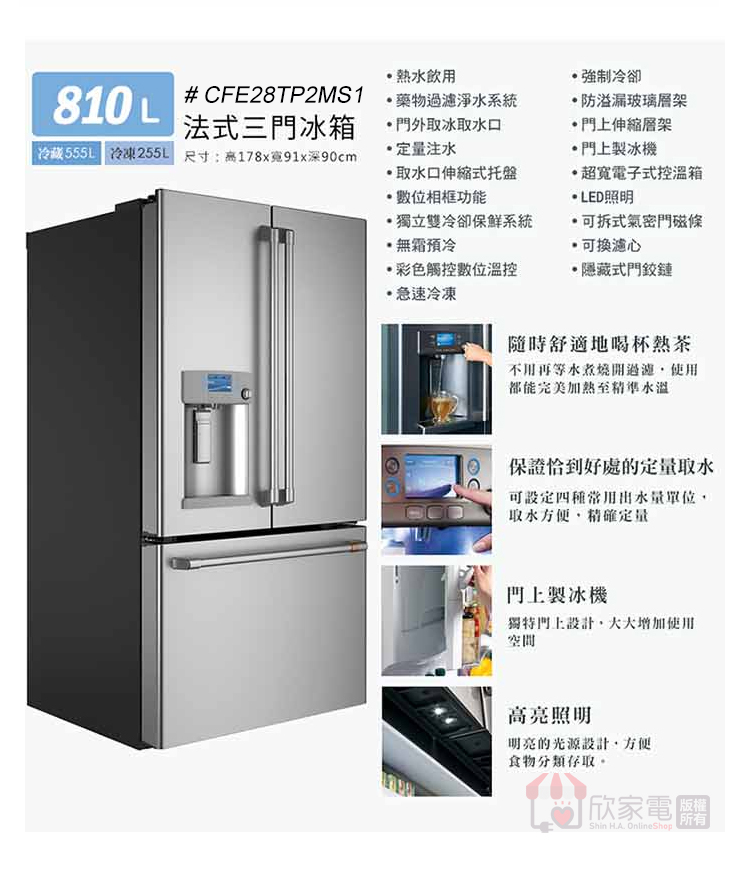 商品容量:810L (冷凍255L/冷藏555L)