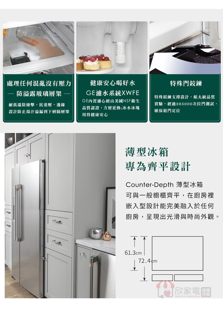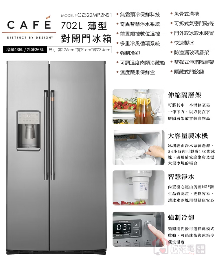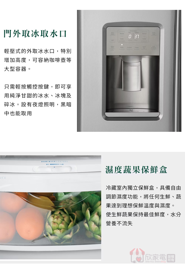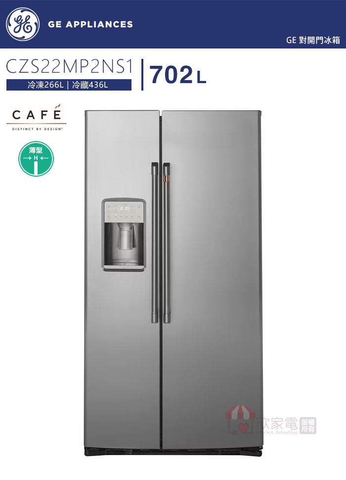 GE 奇異 702公升 薄型對開門冰箱 -不鏽鋼