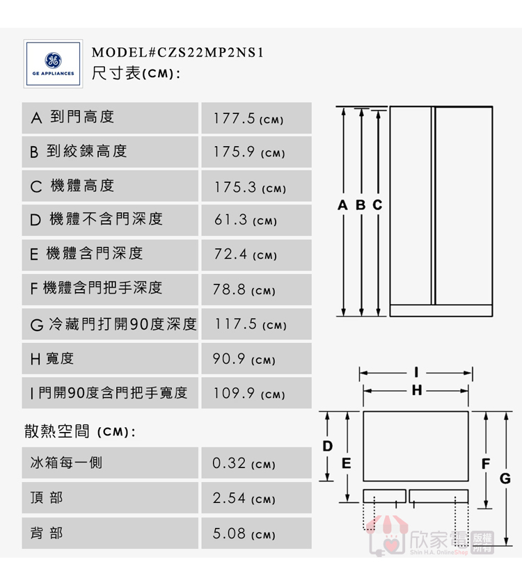 外觀尺寸:高 1775 x 寬 908 x 深 731 mm