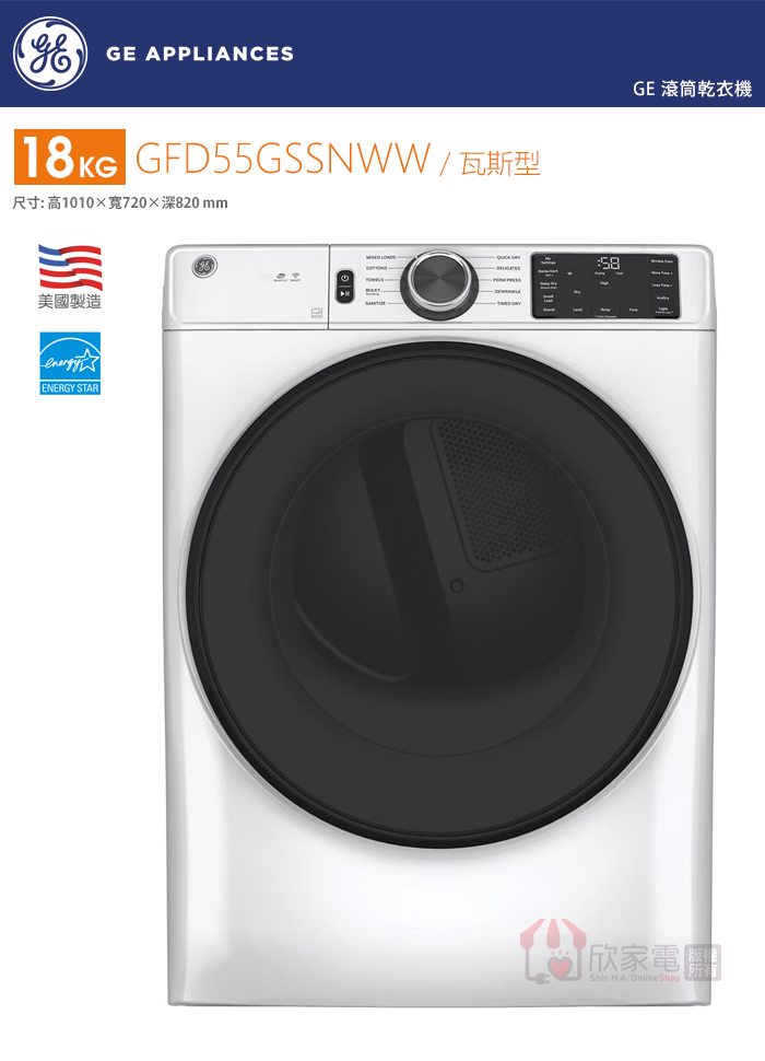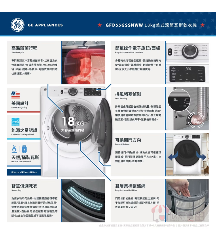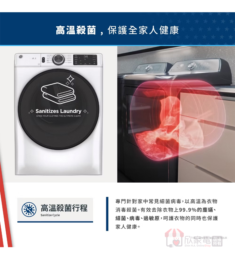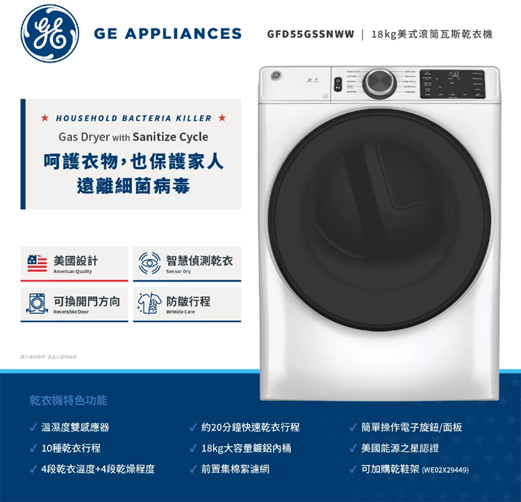 GE 奇異 18KG 消毒循環滾筒式乾衣機-瓦斯型
