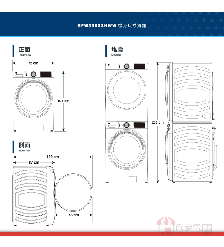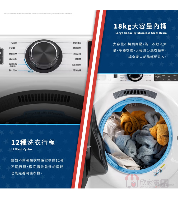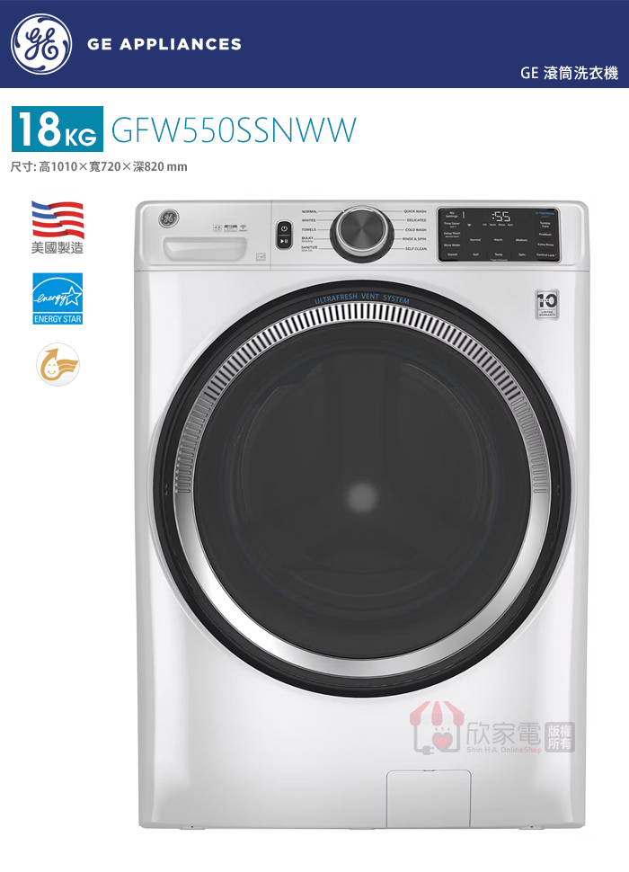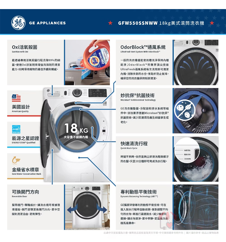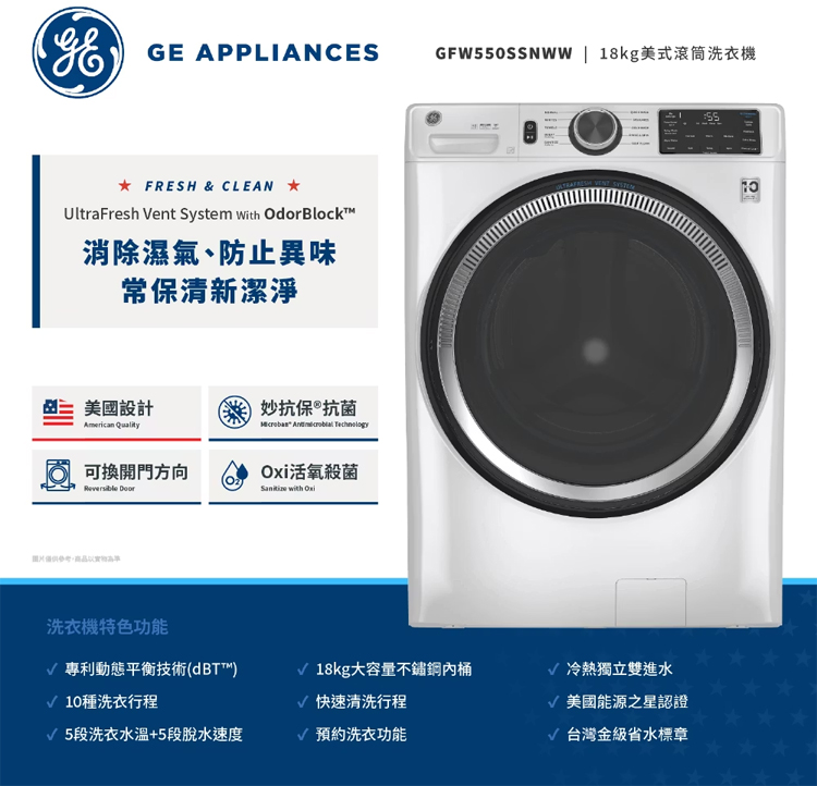 GE 奇異 18KG 變頻滾筒洗衣機