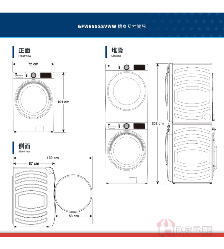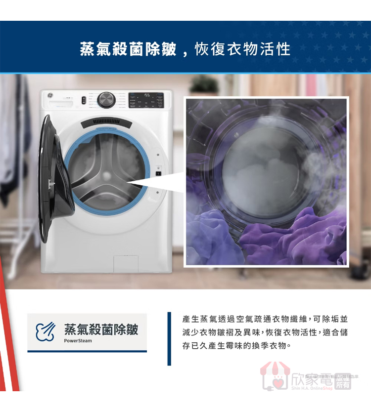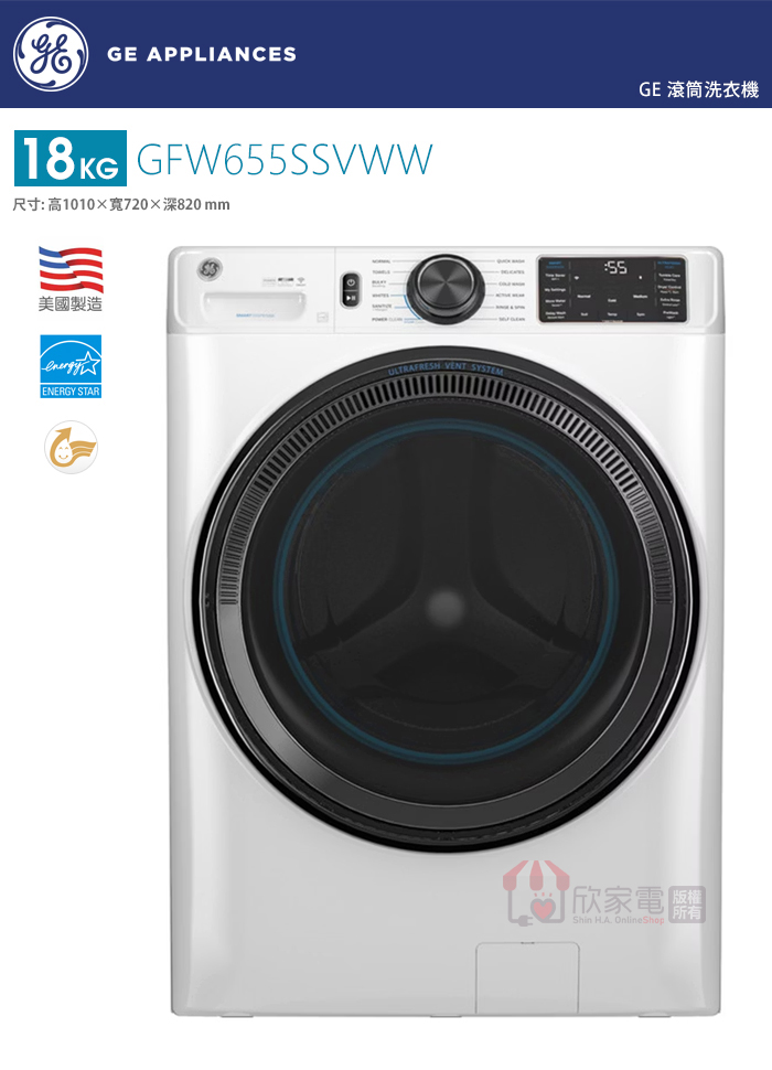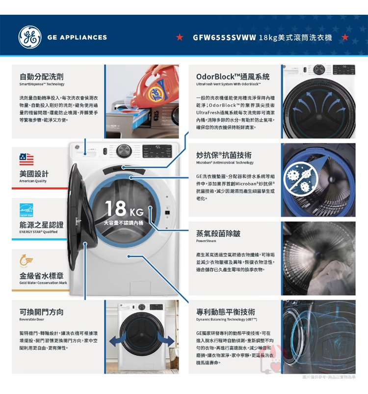 GE 奇異 18KG 變頻蒸氣滾筒洗衣機