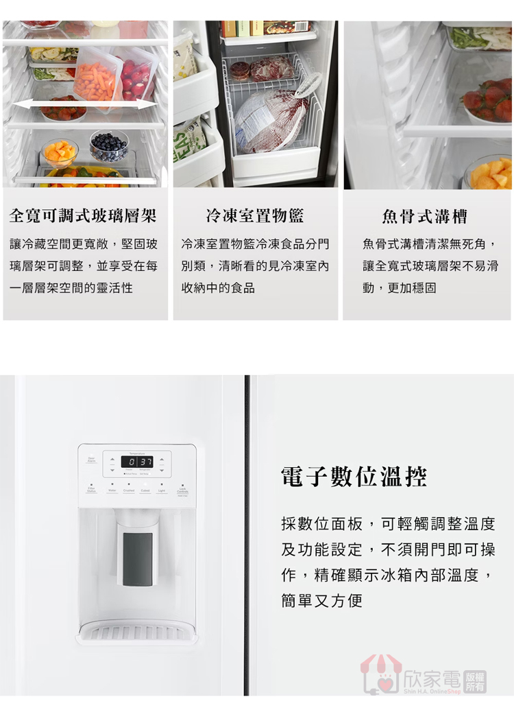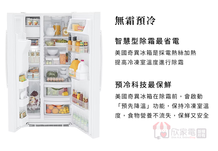 GE 奇異 702公升 窄寬對開門冰箱 -純白