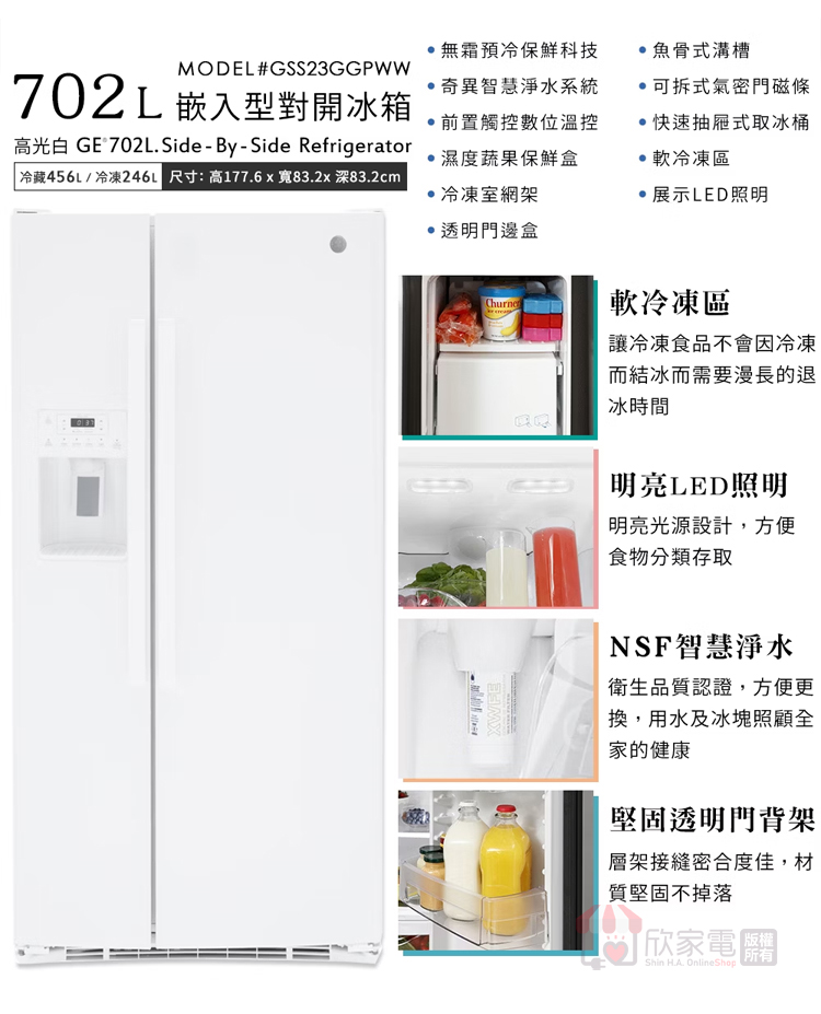 商品容量:702L (冷凍246L/冷藏456L)