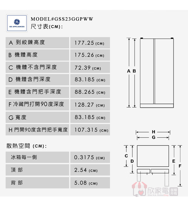 外觀尺寸:高 1775 x 寬 832 x 深 832 mm