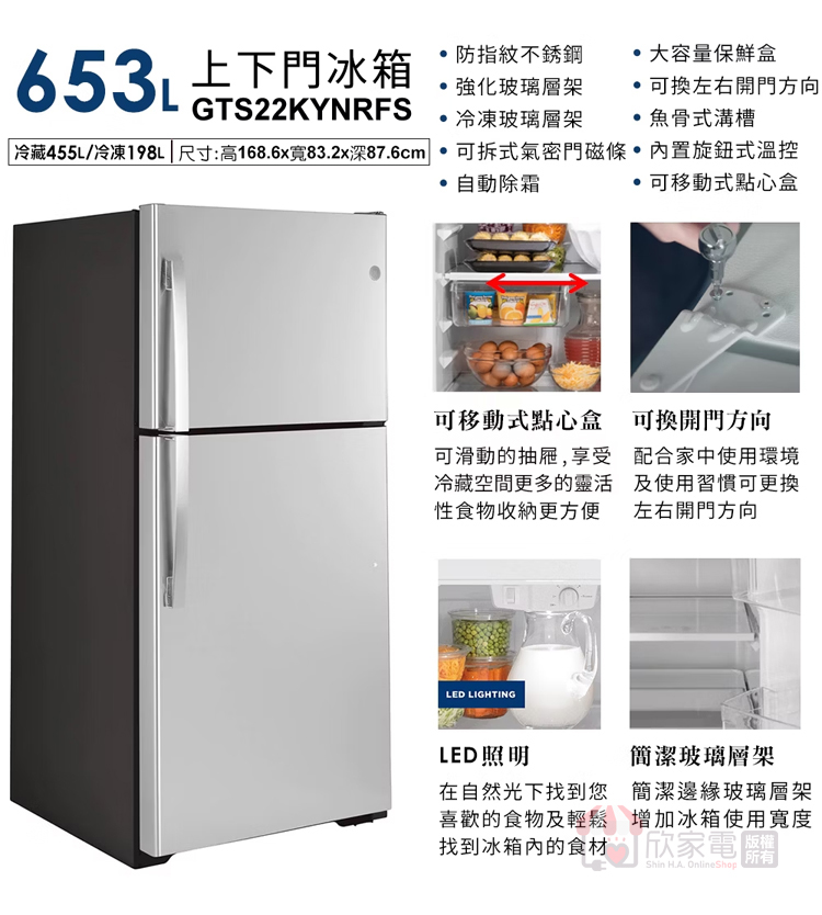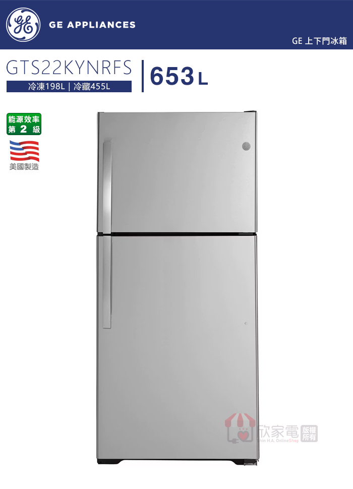 GE 奇異 653公升 經典上下門冰箱 -無指紋不鏽鋼