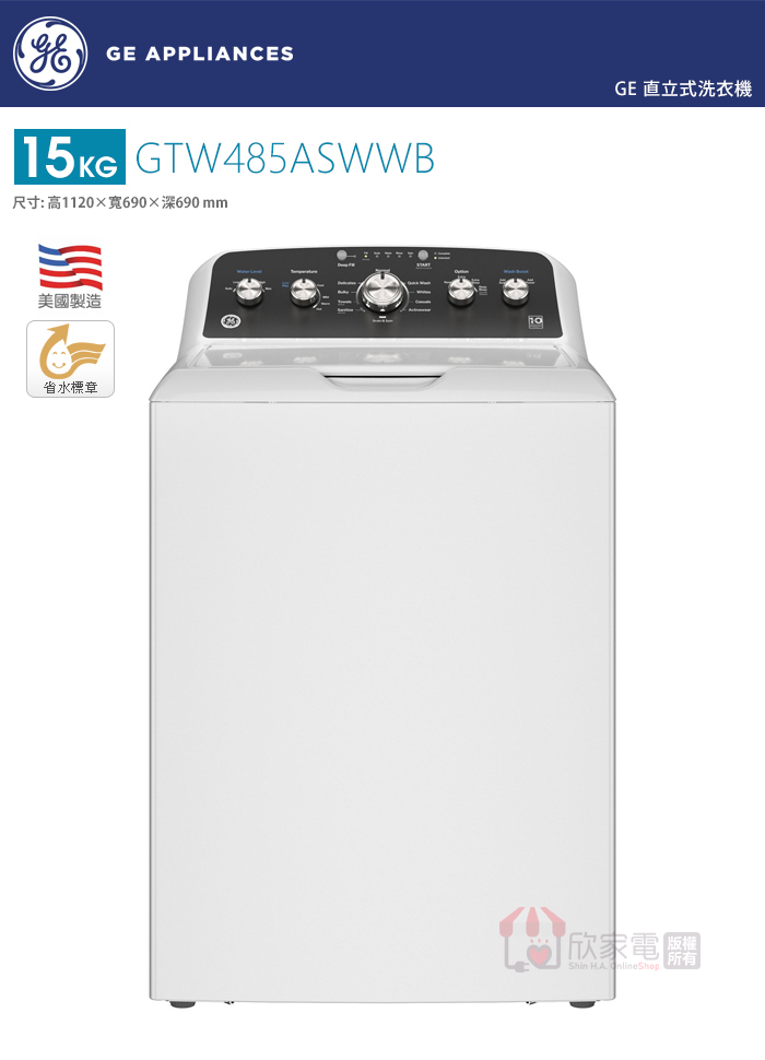 GE 奇異 15KG 變頻直立式單槽洗衣機