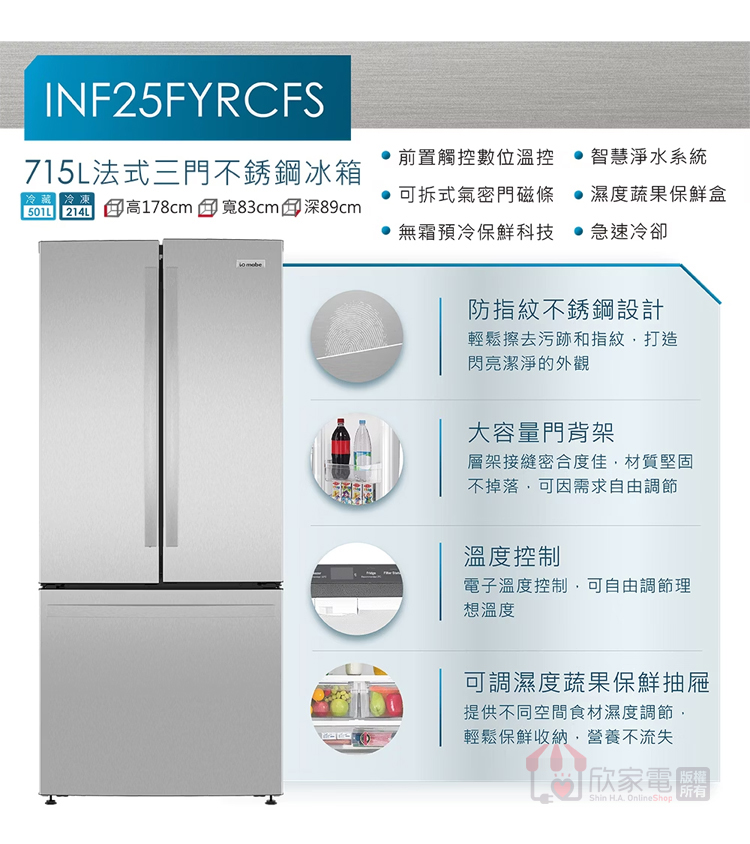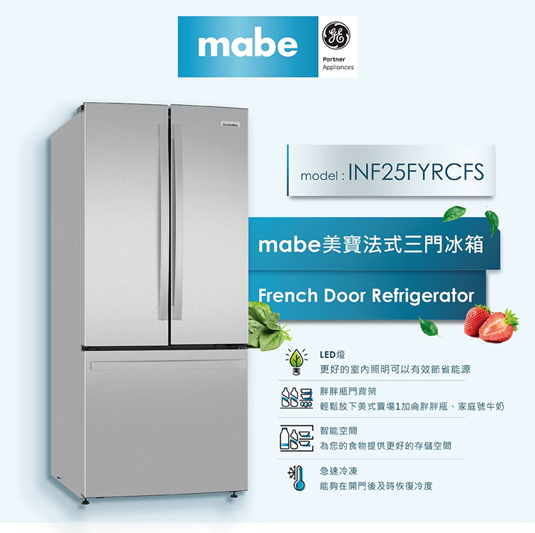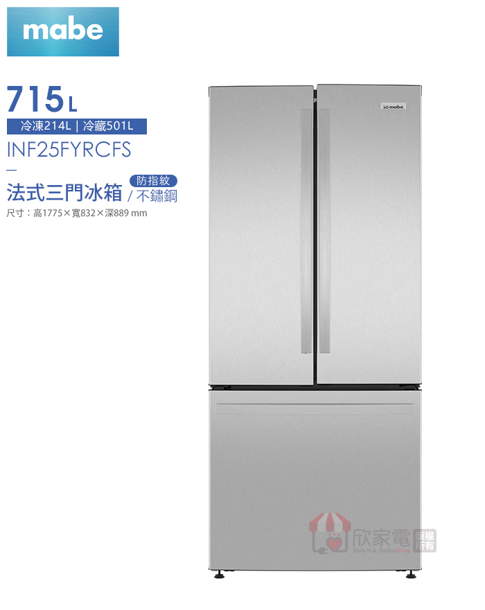 MABE 美寶 715公升 法式三門冰箱 -防指紋不鏽鋼