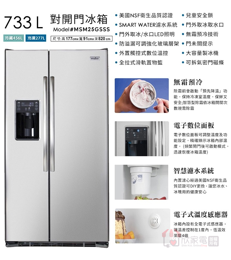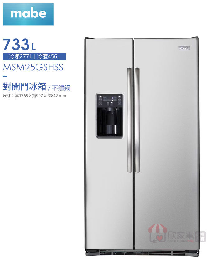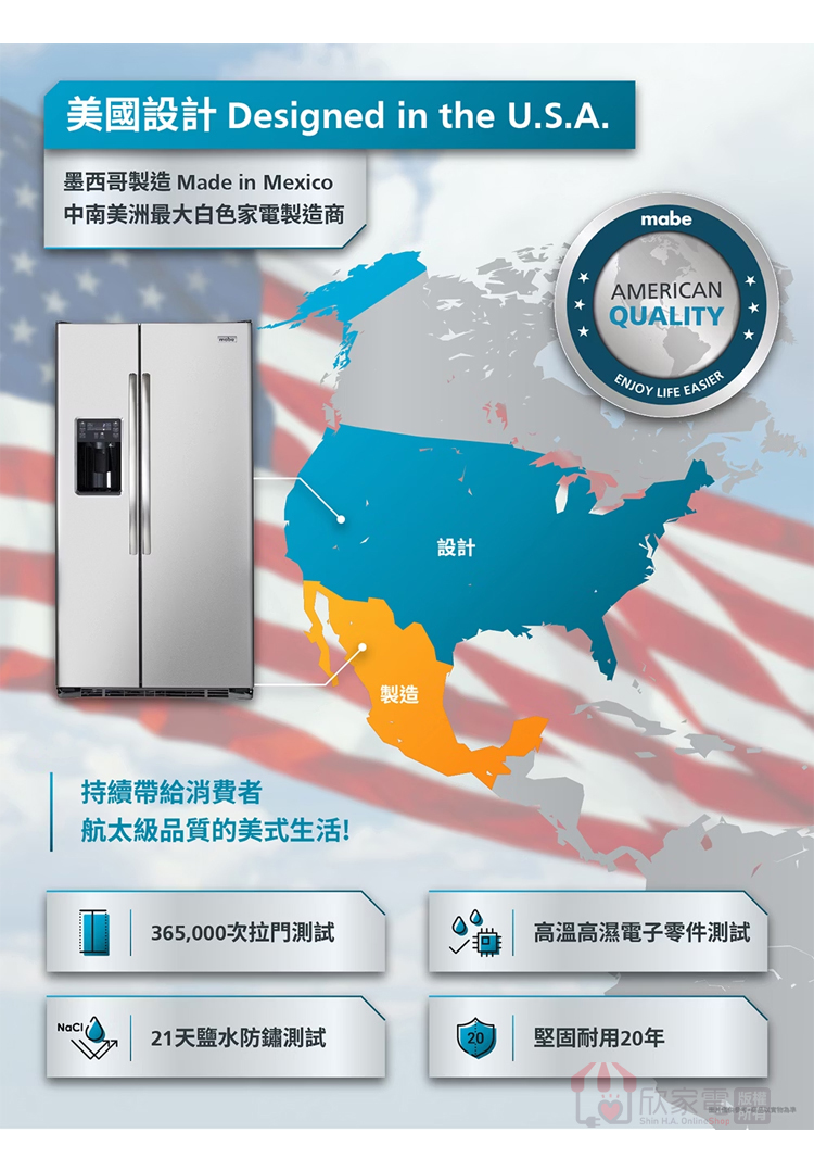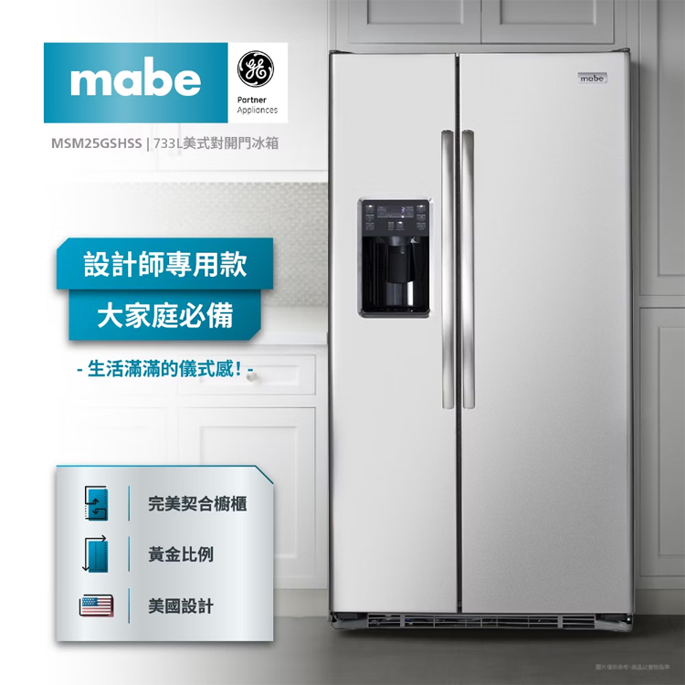 MABE 美寶 733公升 美式大容量對開門冰箱 -不鏽鋼