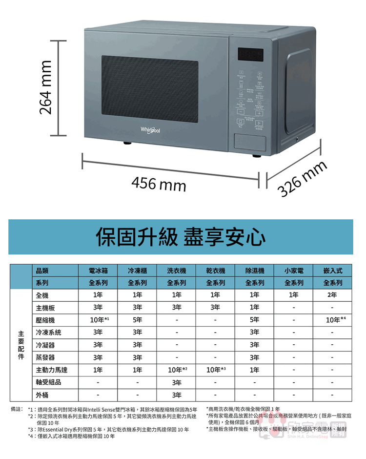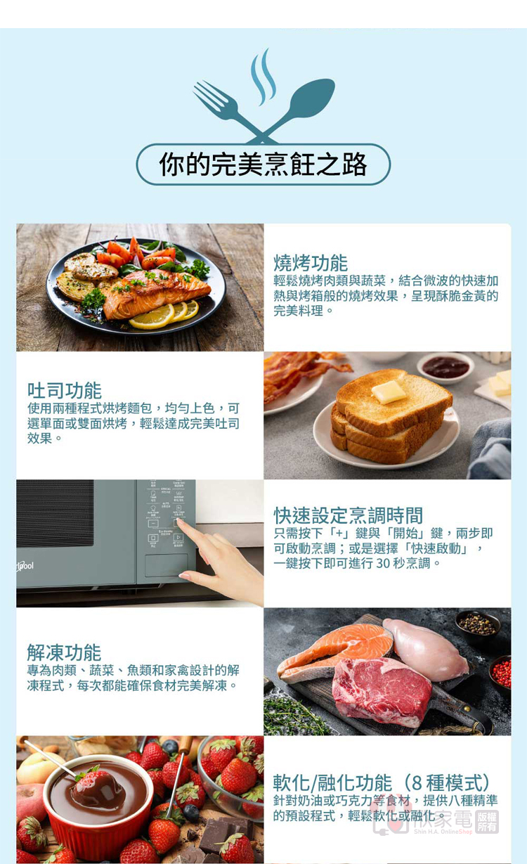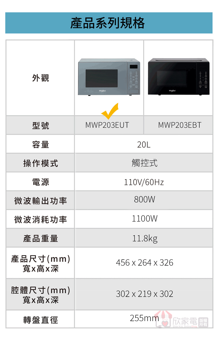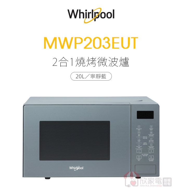 Whirlpool 惠而浦 20公升 2合1燒烤微波爐 -寧靜藍