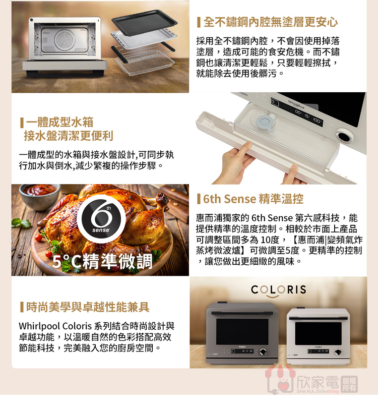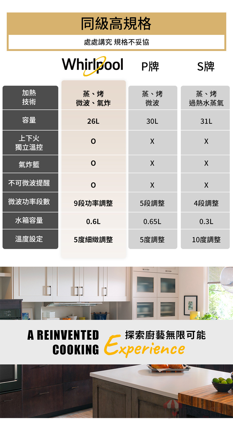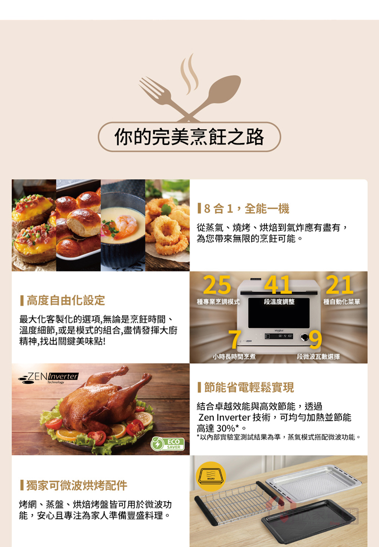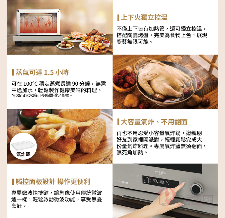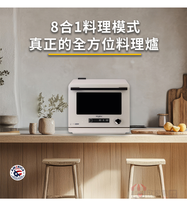 Whirlpool 惠而浦 26公升 8合1變頻氣炸蒸烤微波爐