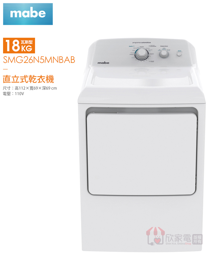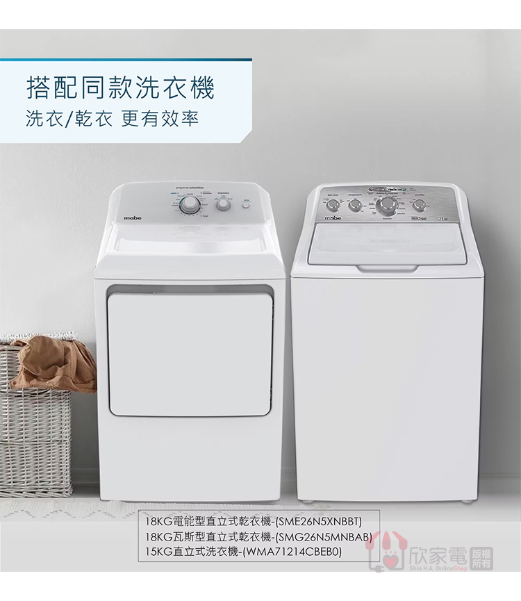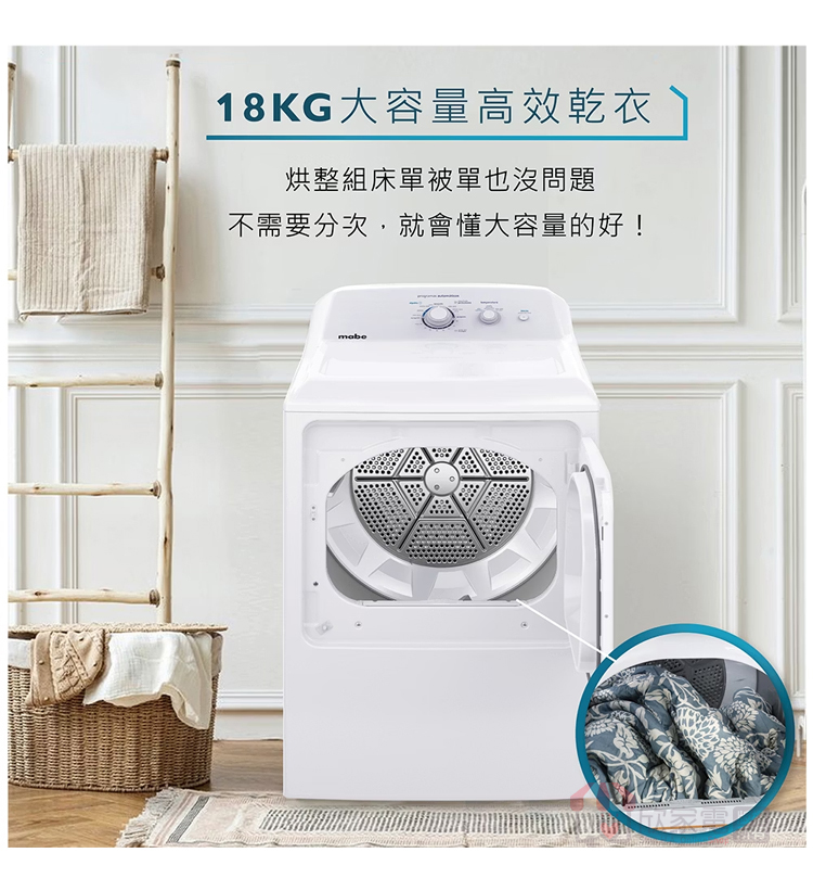 MABE 美寶 18KG 美式3行程直立乾衣機-瓦斯型