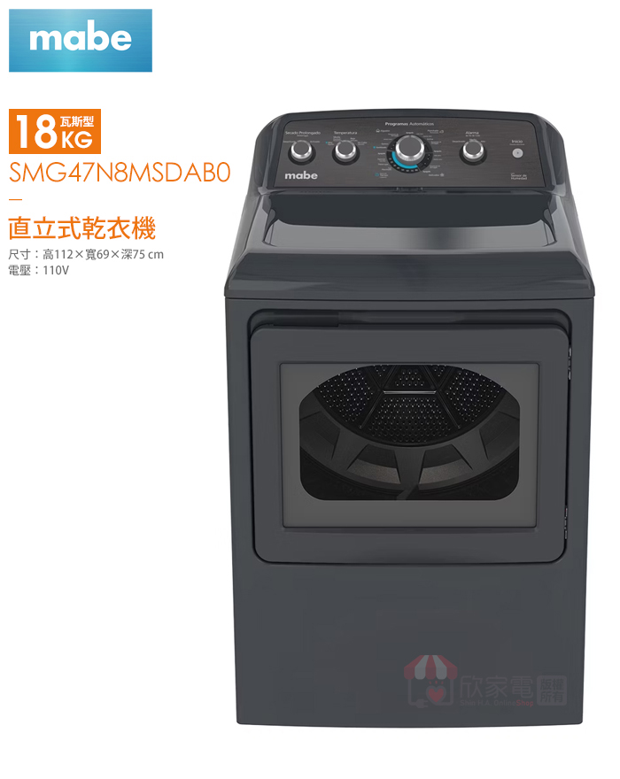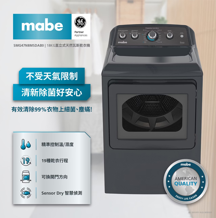 MABE 美寶 18KG 美式19行程直立乾衣機-瓦斯型