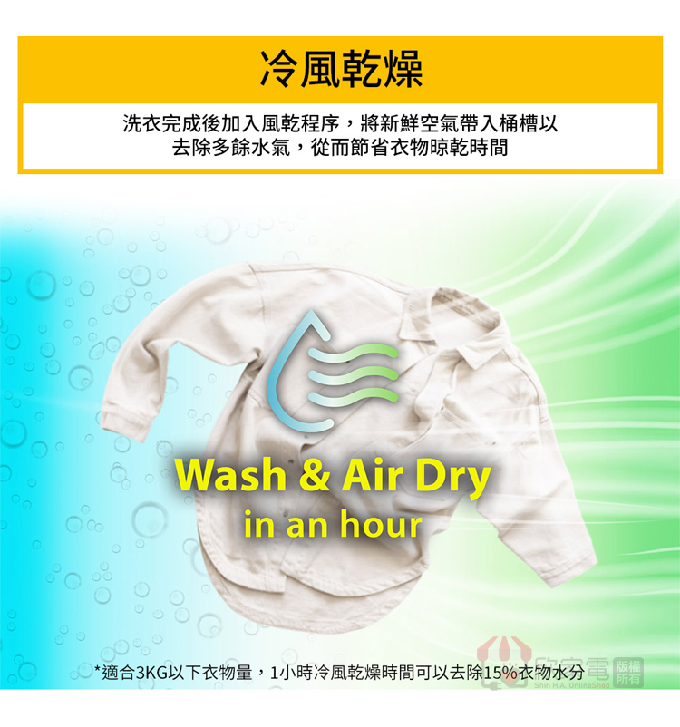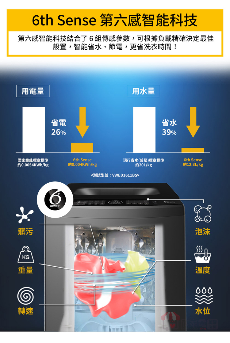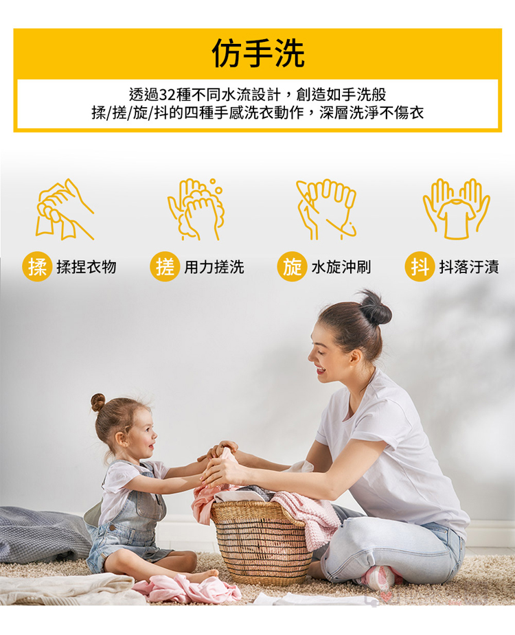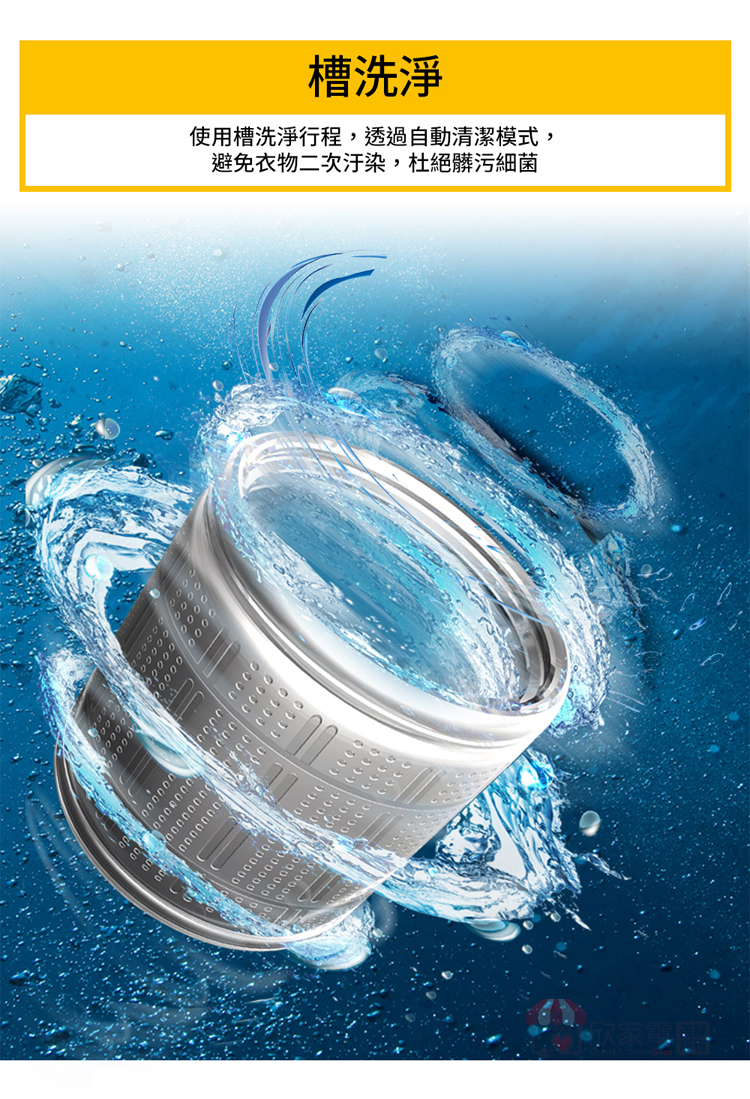 洗衣行程:12種 (標準、快洗、柔洗、大件、洗+風乾、頑漬淨、羊毛、毛巾、自選、洗脫、脫水、槽洗淨)
