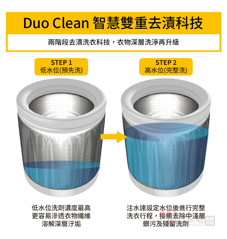 *適用洗劑:HE高效能低泡沫洗衣精或Wpro專業級濃縮洗衣精。