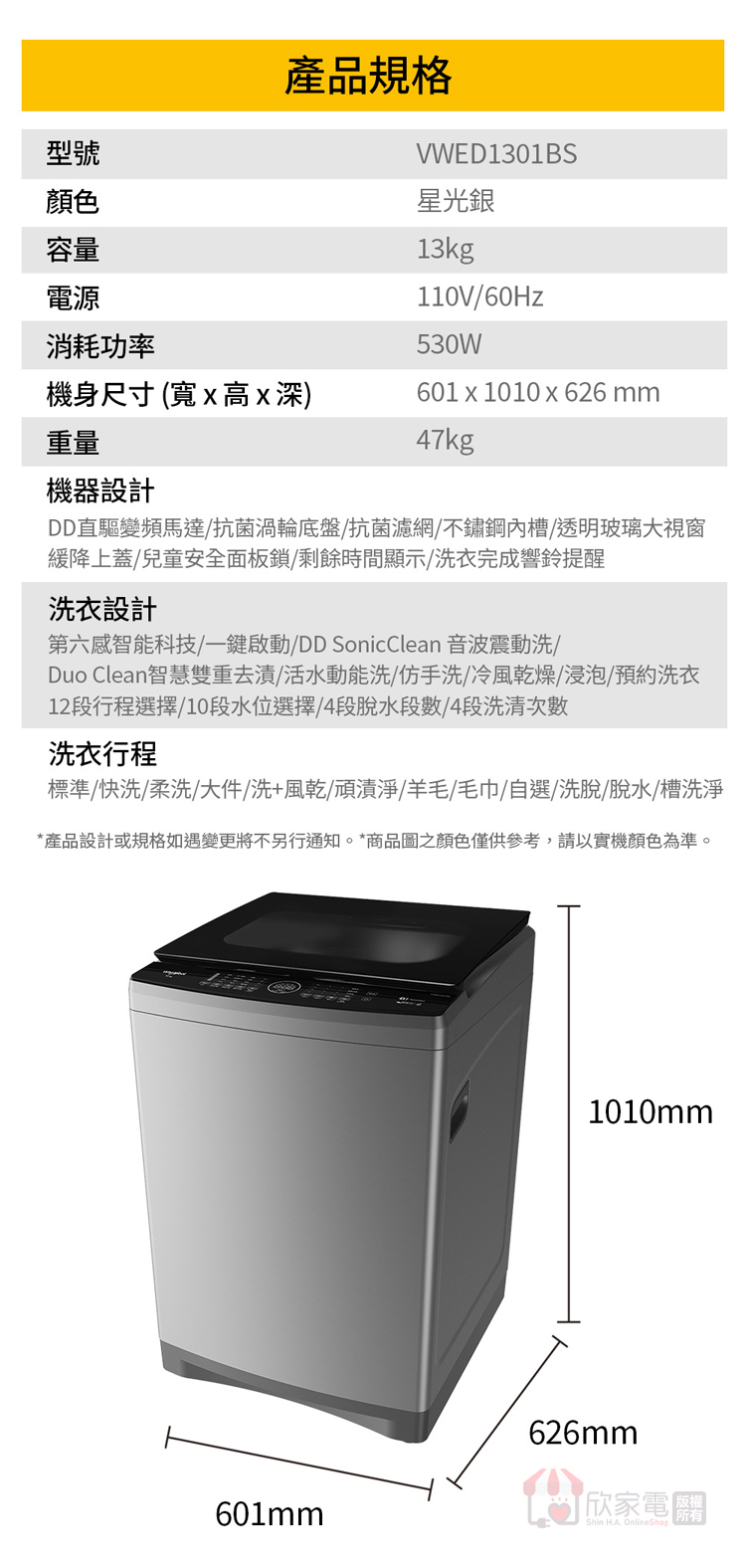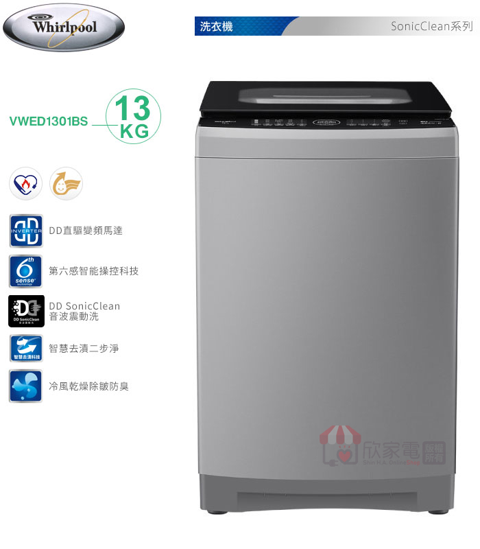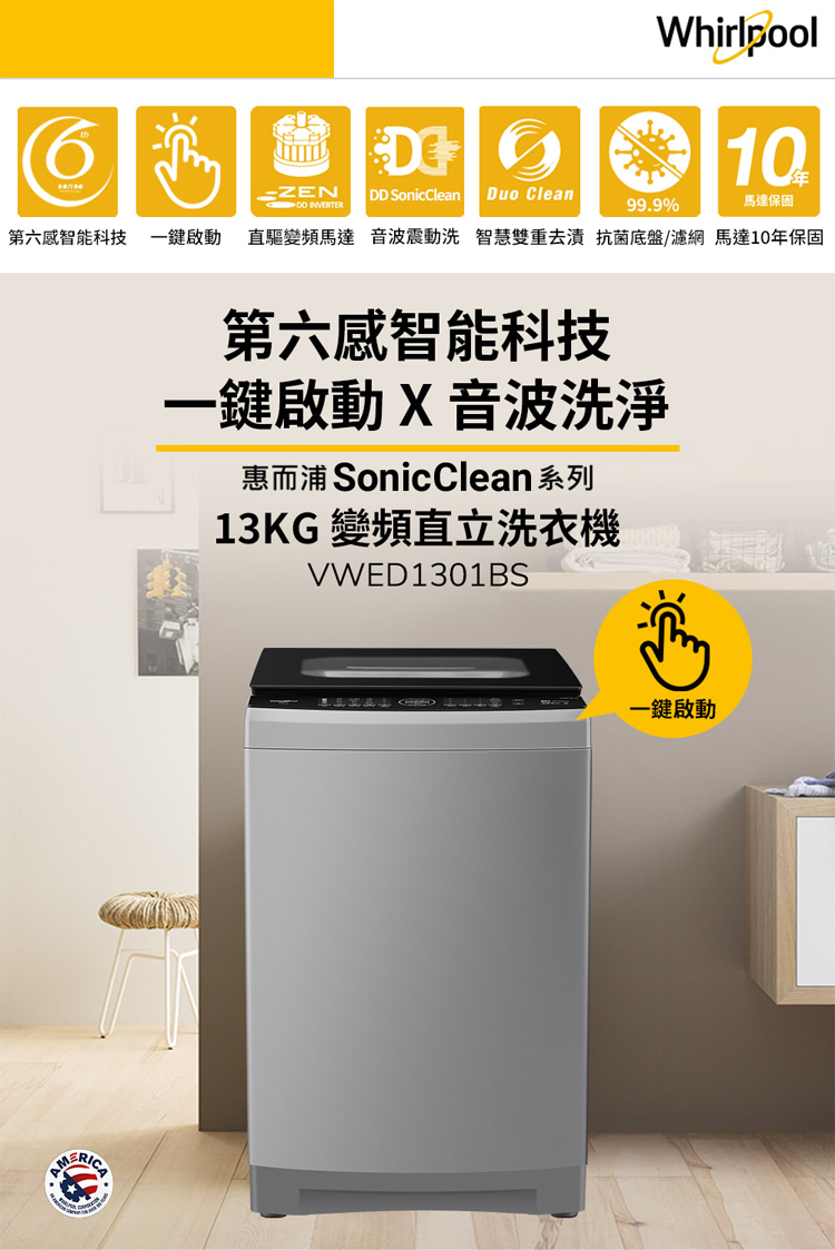 Whirlpool 惠而浦 13KG SonicClean DD直驅變頻直立洗衣機
