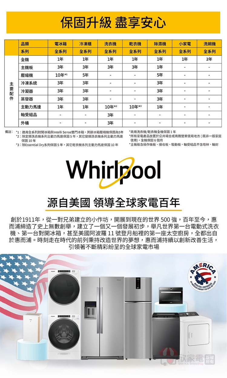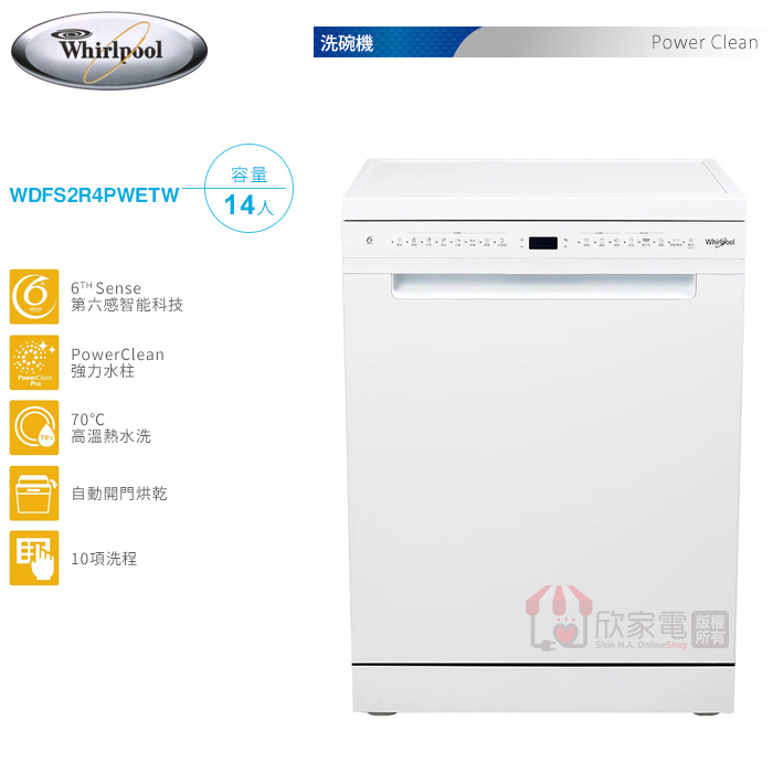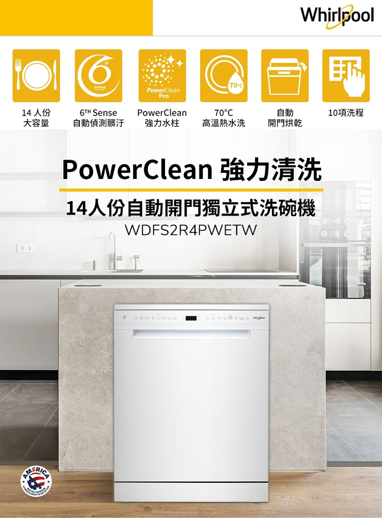 Whirlpool 惠而浦 14人份 自動開門獨立式洗碗機-閃耀白