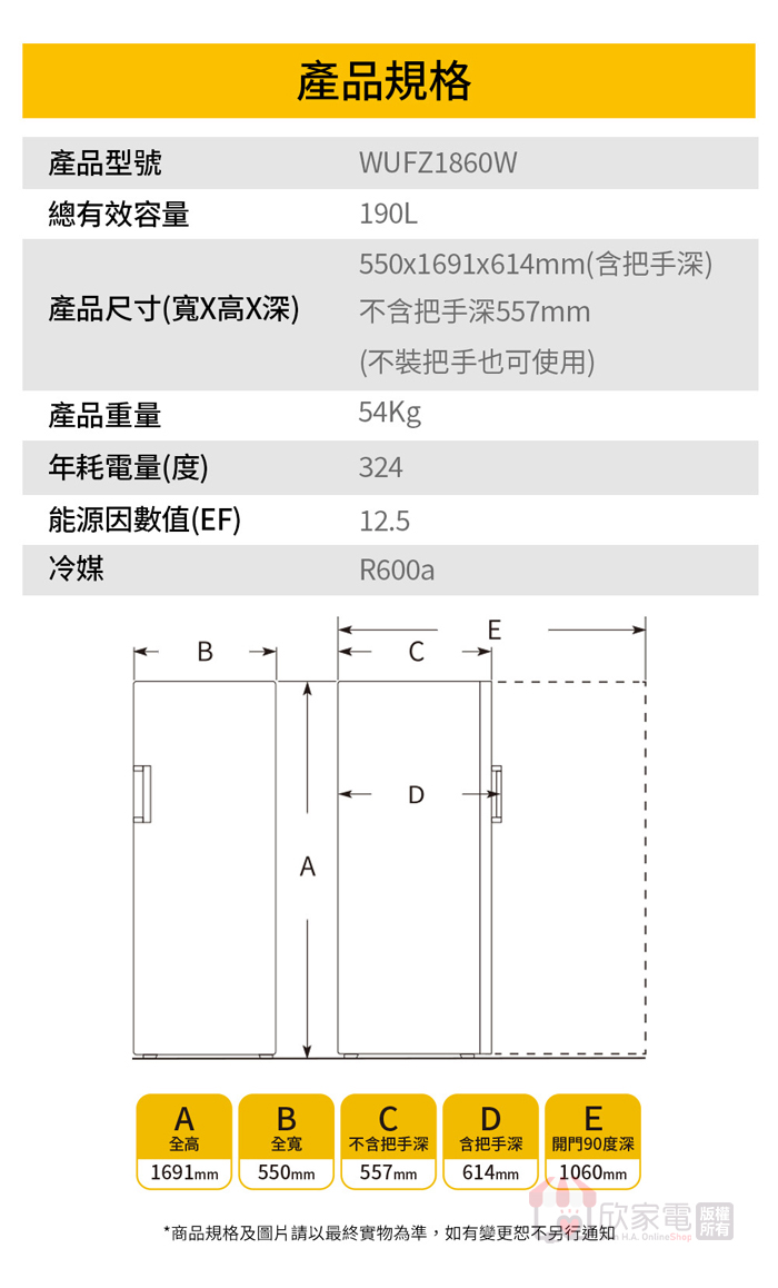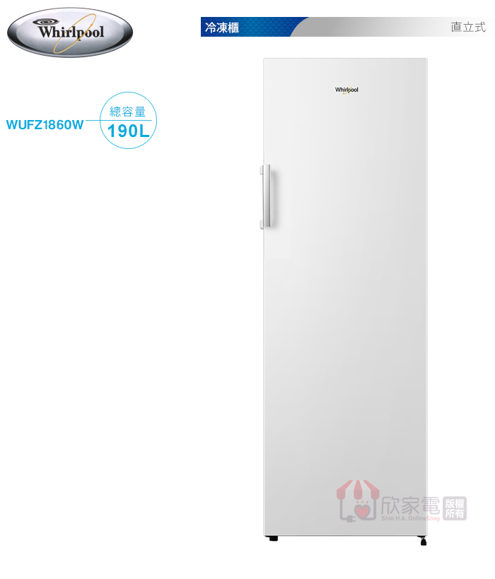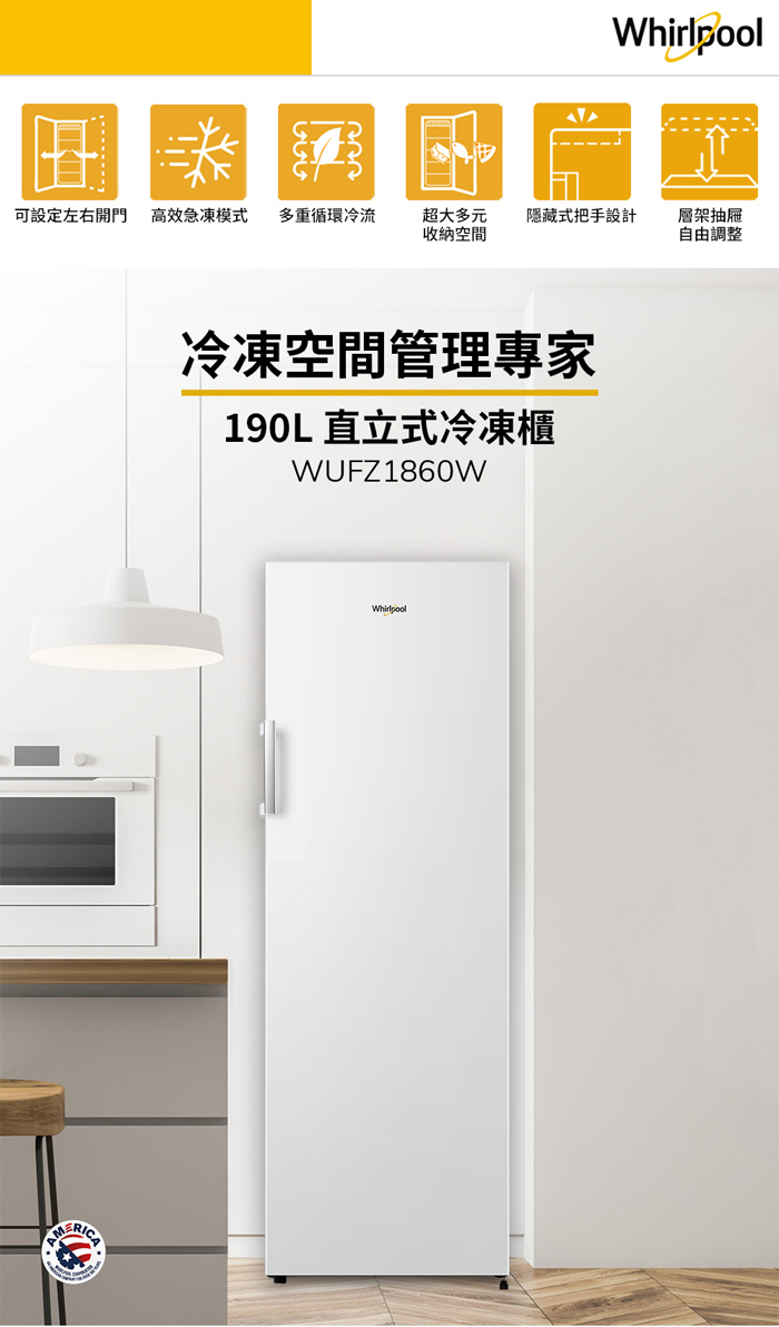 Whirlpool 惠而浦 190公升 直立式冷凍櫃