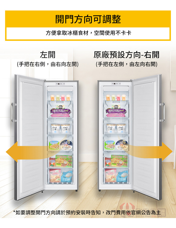 備註:如需更改開門方向,酌收$1,000改門費用