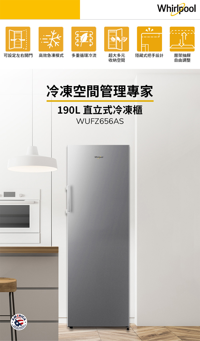 Whirlpool 惠而浦 190公升 直立式冷凍櫃