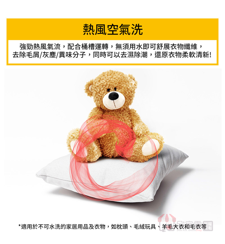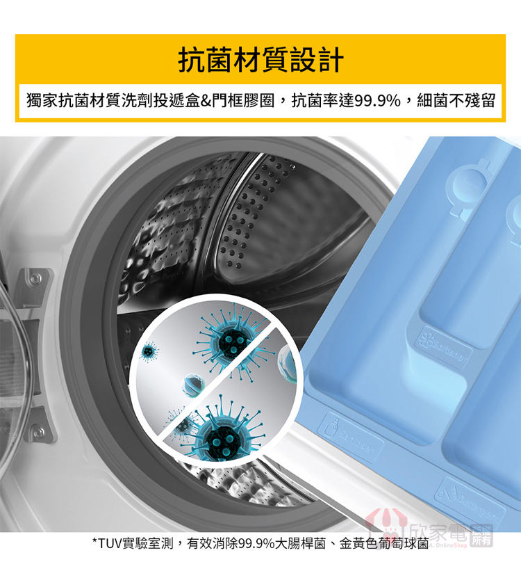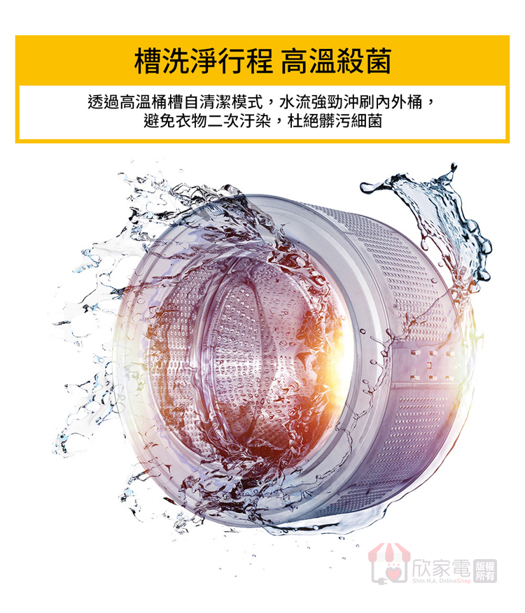 洗衣行程:10種 (標準、殺菌消毒、羊毛、羽絨、頑漬淨、單獨脫水、1hr 洗烘、熱風洗、槽洗淨、單烘)