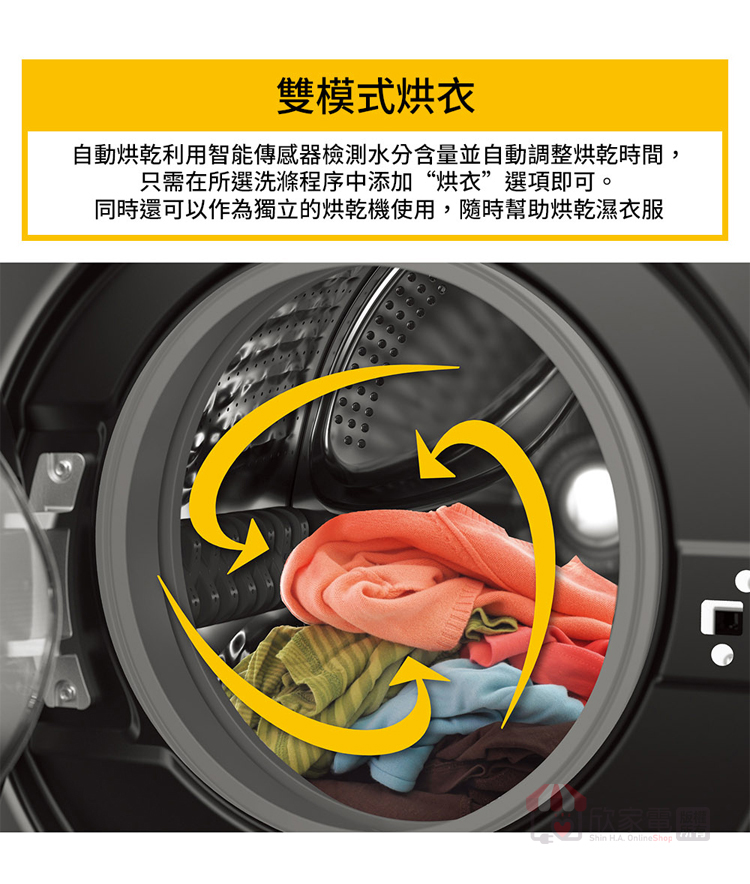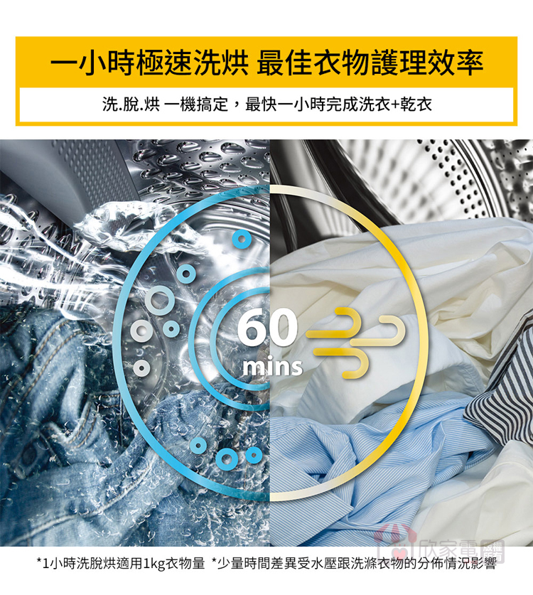 消耗電功率:1000W(洗衣)/1300W(烘衣)