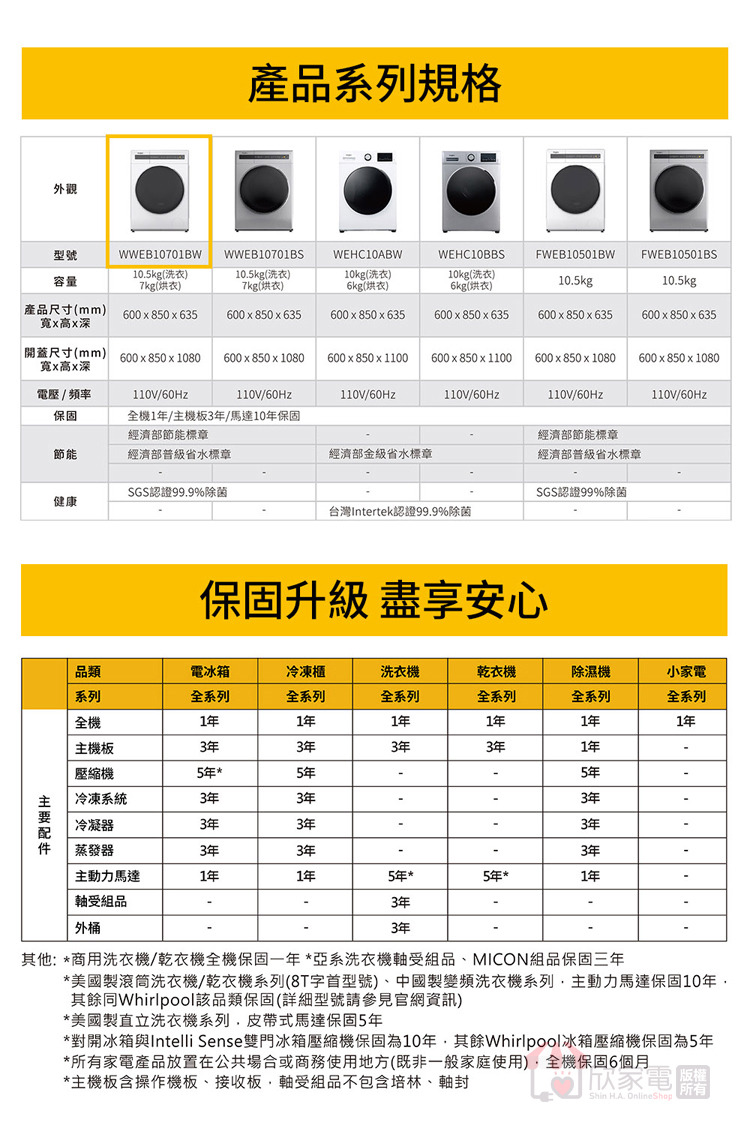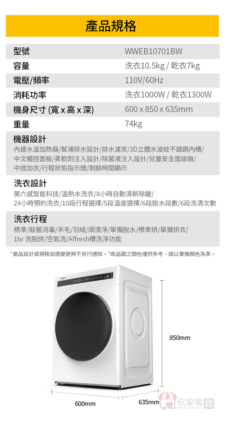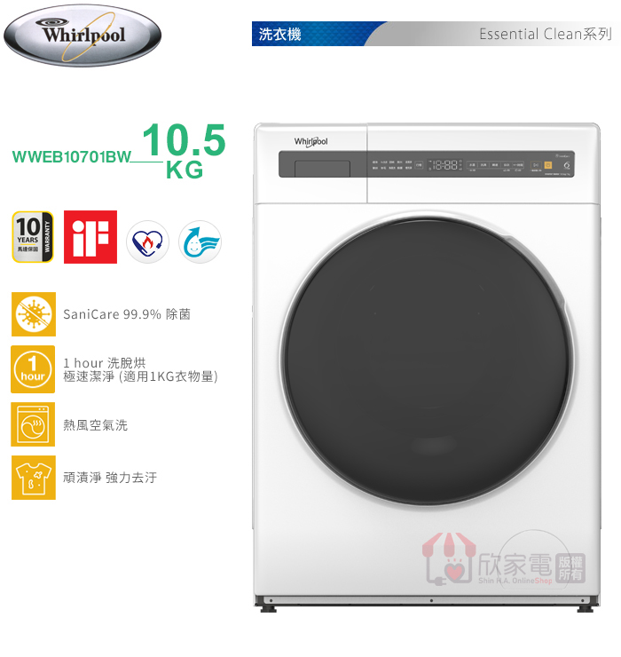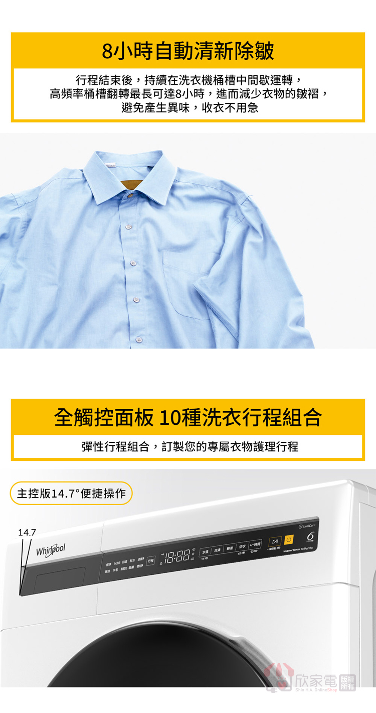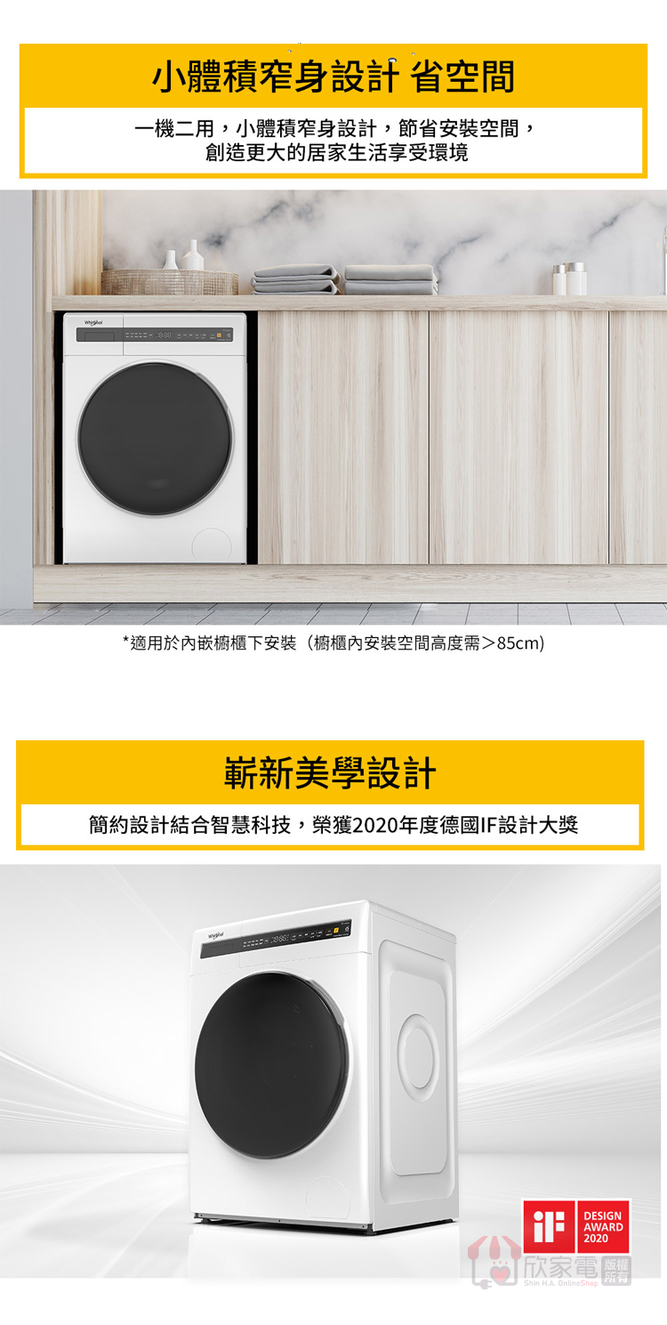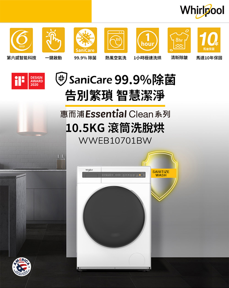 Whirlpool 惠而浦 10.5KG 變頻洗脫烘滾筒洗衣機